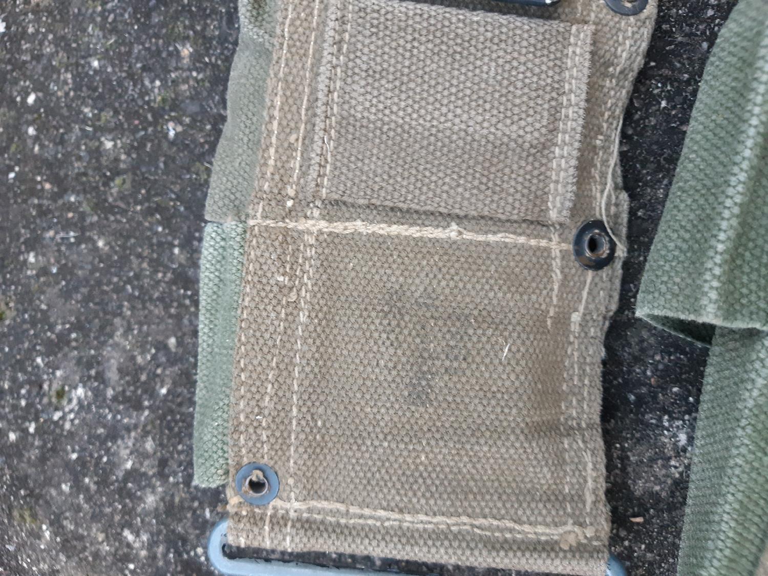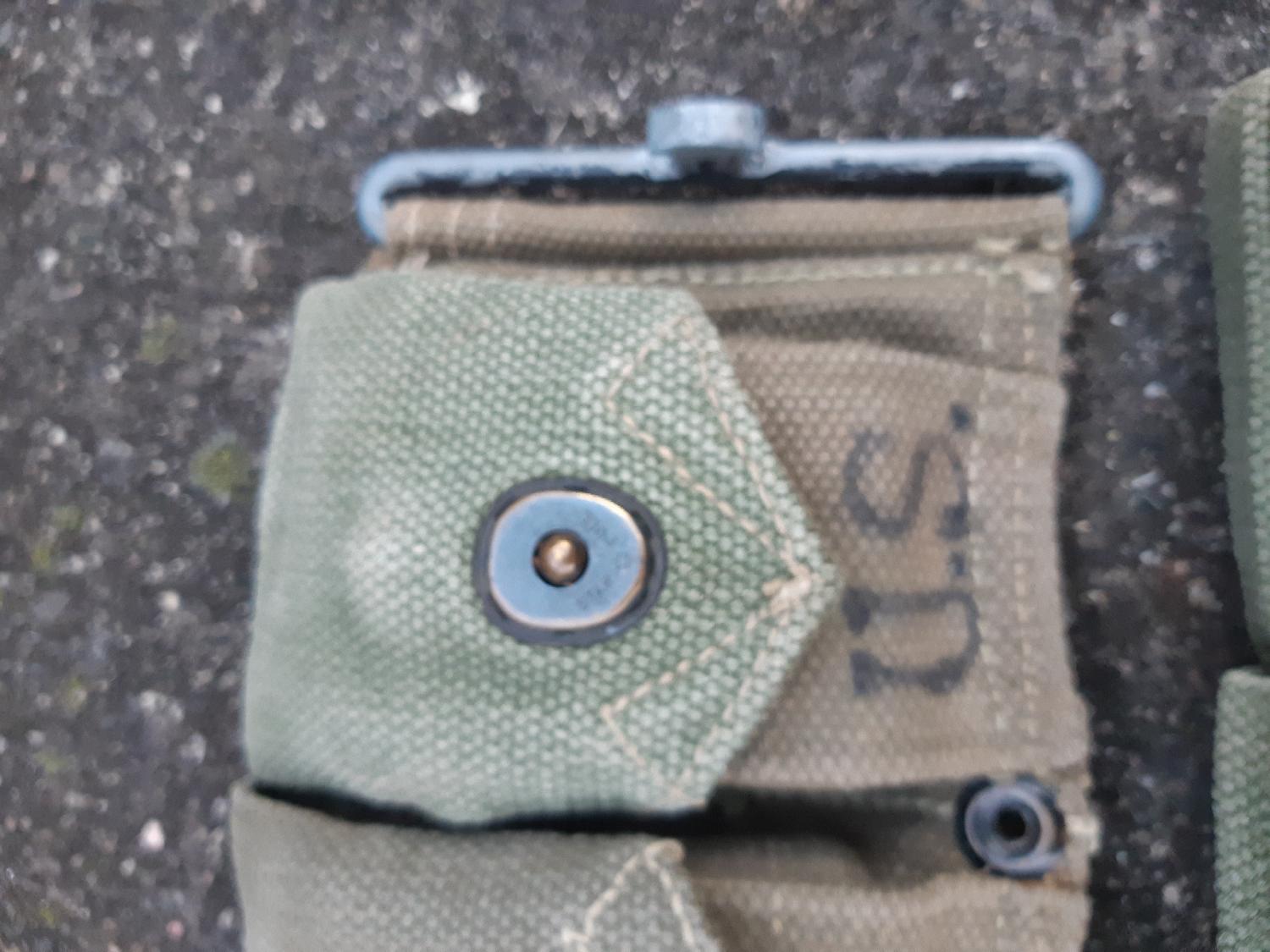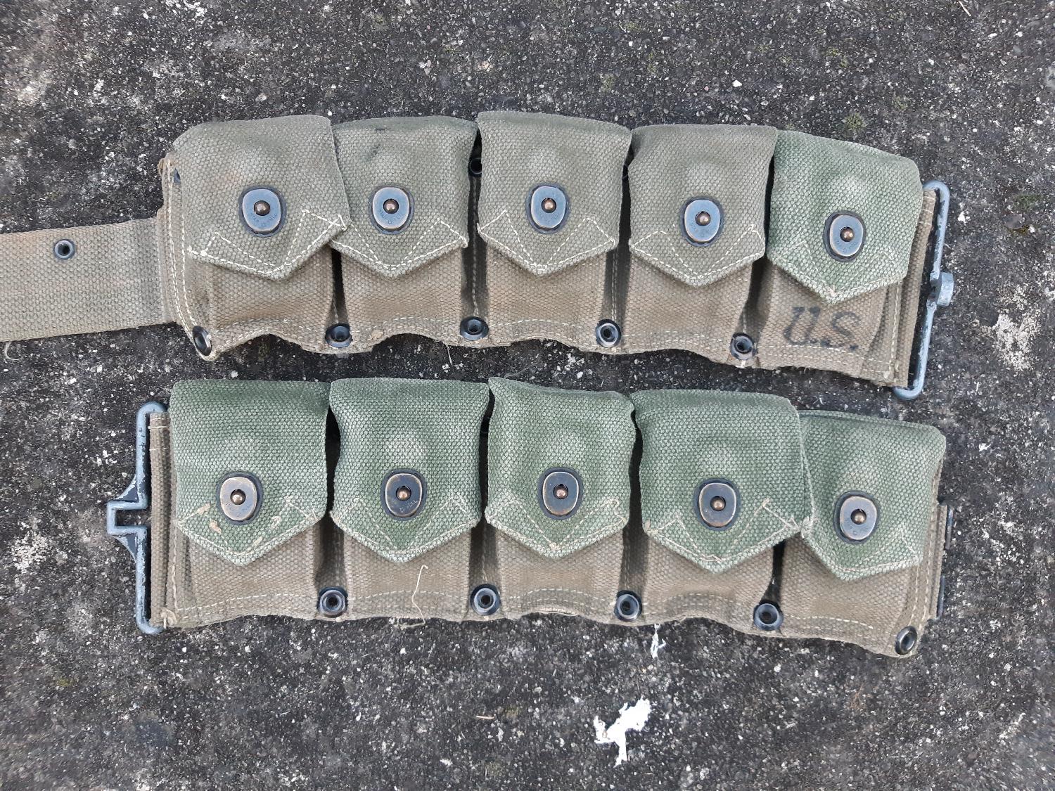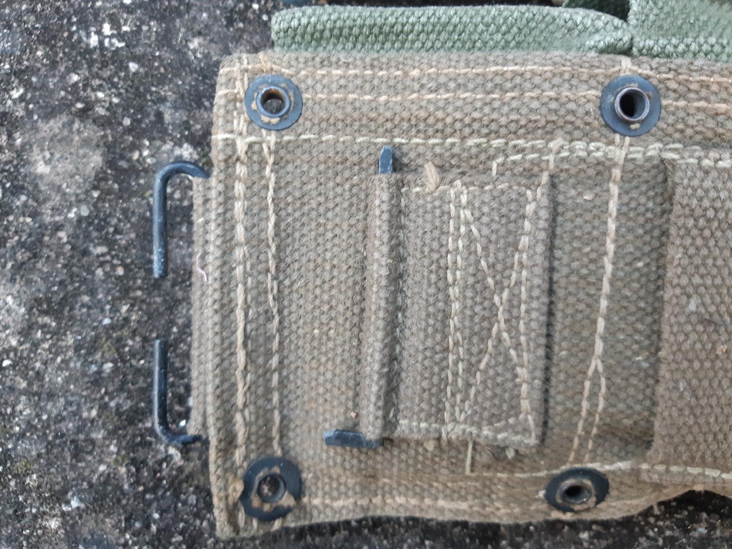 Bonjour, je propose ce ceinturon M1923 pour Garand daté 1943. Trouvé en Alsace. Une des boucles de fixation à la partie dorsale est cassée mais n'empêche pas le port sur mannequin.
