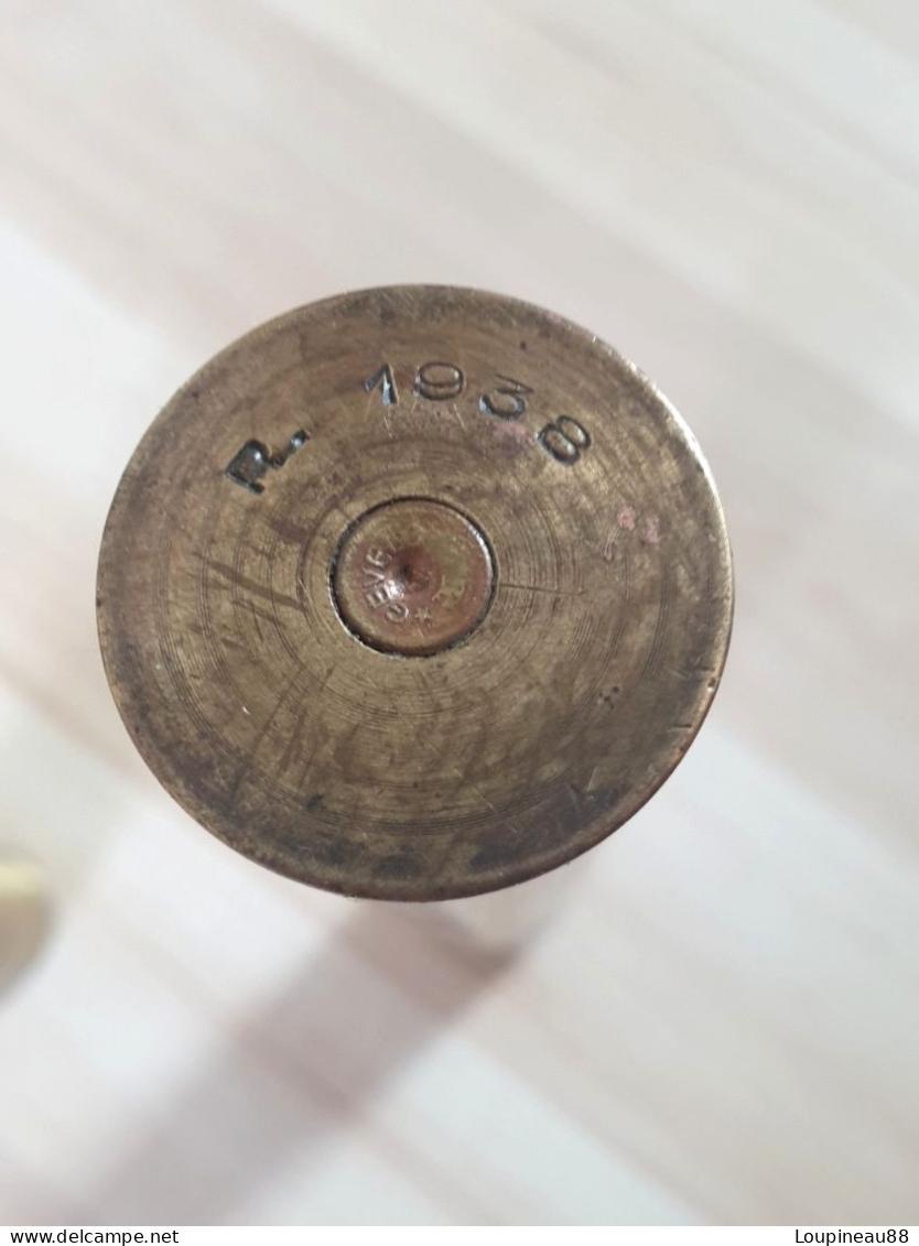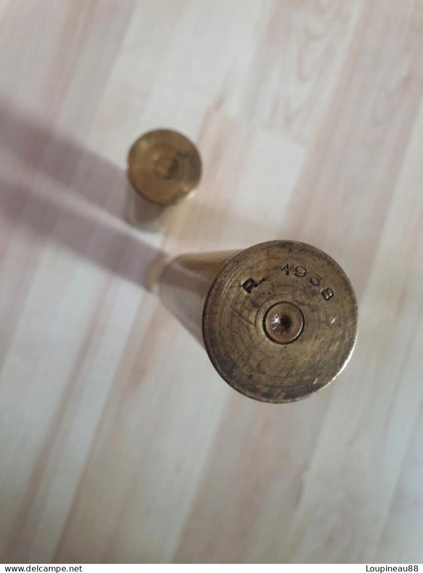 Fusée éclairante RUGGIERI de couleur jaune était propulsée par le pistolet lance-fusée Mdle 1917. Le marquage du culot est R.1938, l'amorce est marquée GEVELOT, longueur de l'objet 19,5 cm, diamètre 25 mm. Le second étui vide et quant à lui du même calibre. Sa longueur est de 10 cm et le culot est marqué R=1931 et son amorce est gravée G.F.PHIS. Il est à noter que « le bouchon » mis à l'extrémité de la fusée éclairante est un rajout personnel et peut être retiré sans problème. Frais de port à prévoir en mondial relay