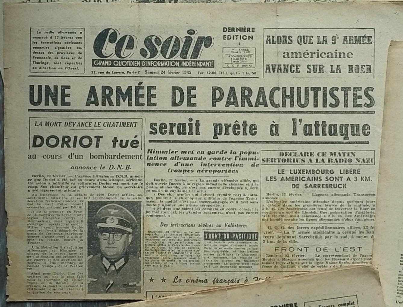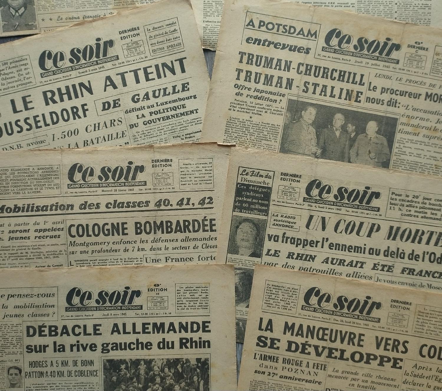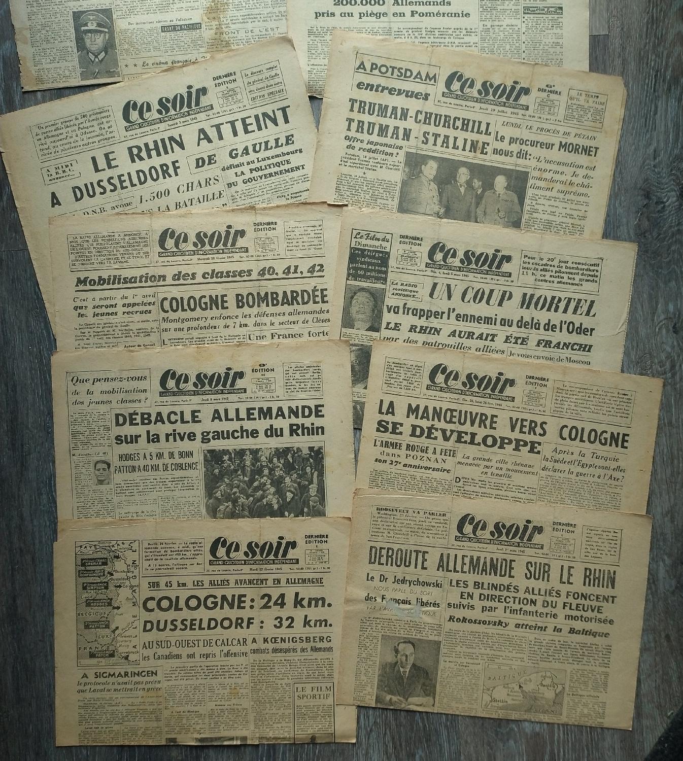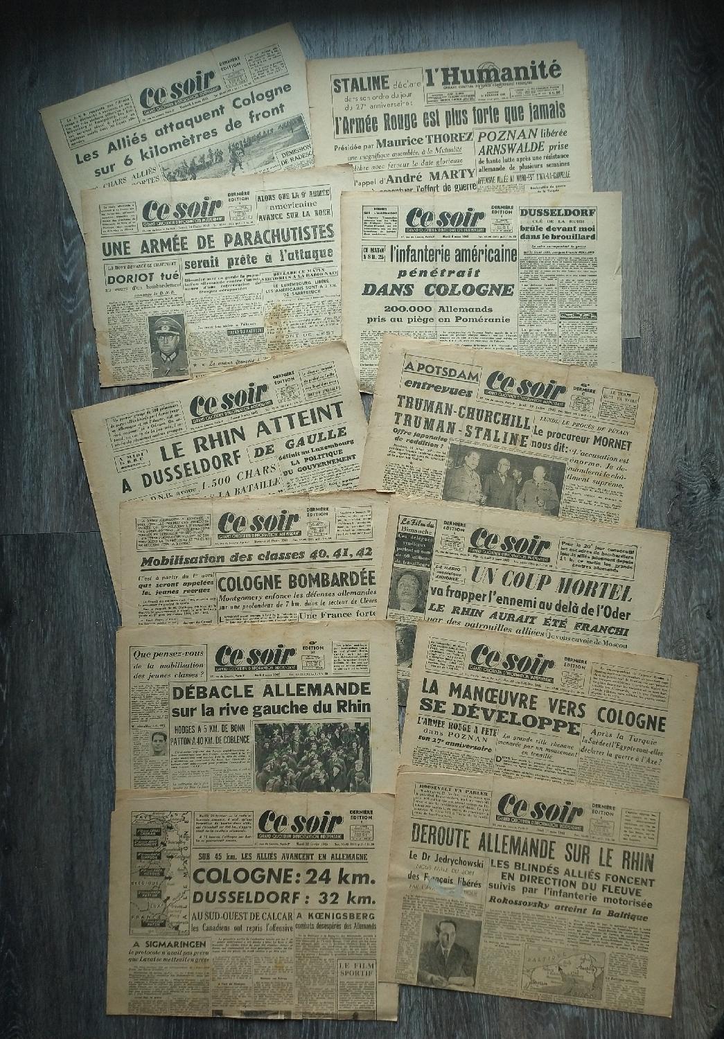 Lot de 12 journaux Français période de février à avril 1945.