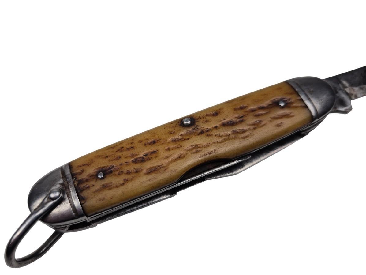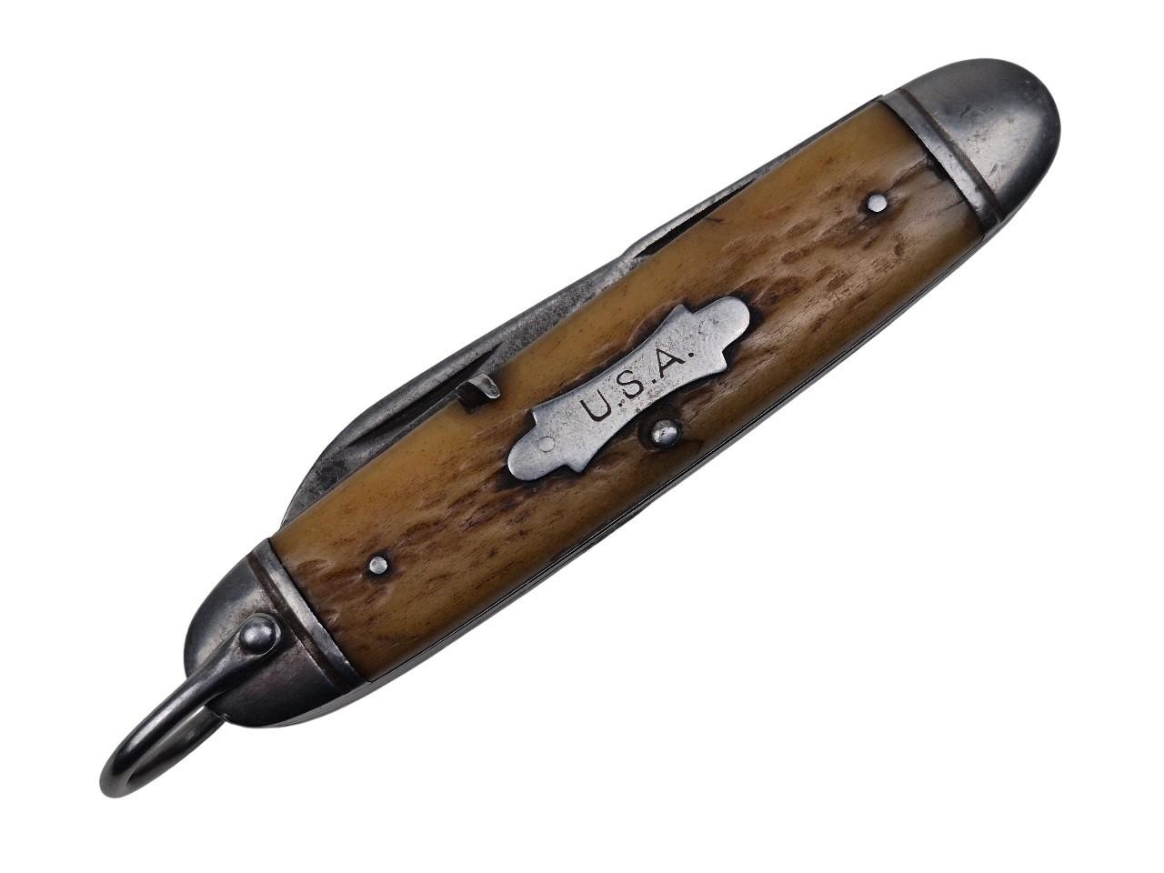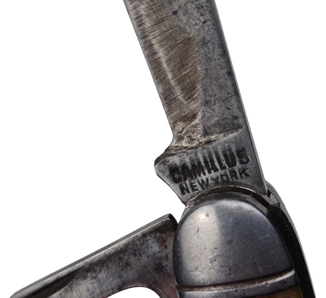 Réalisé avec manche en corne, le couteau est de fabrication Camillus, fabricant connu pour la fabrication d'armes blanches.