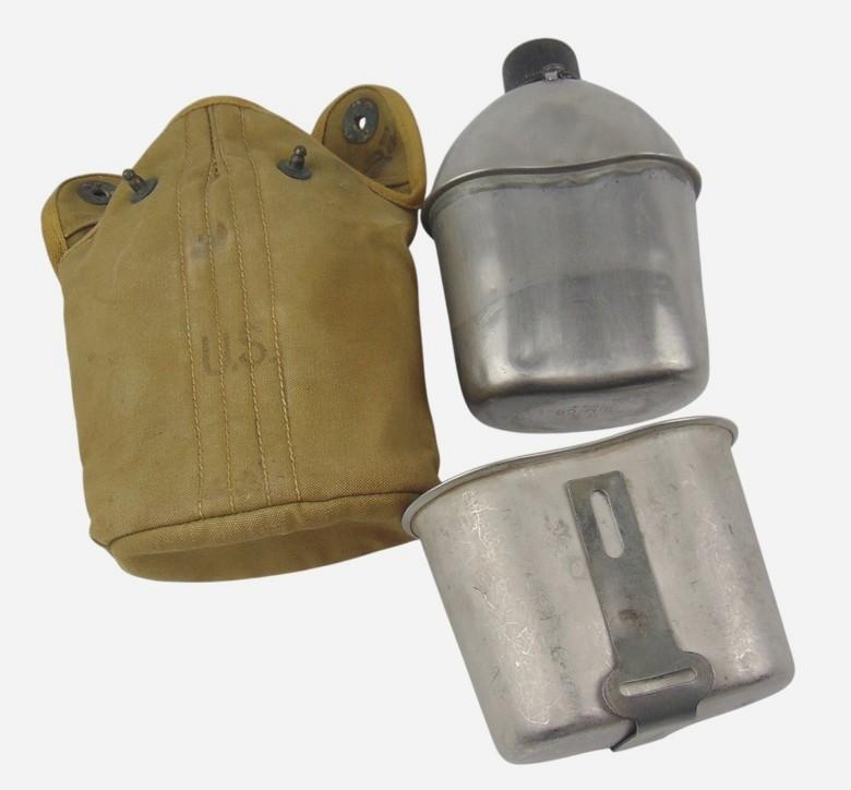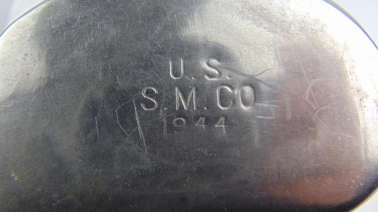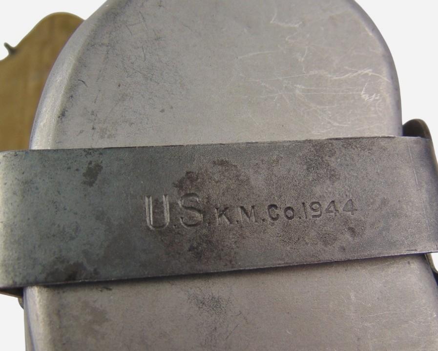 La gourde et bien marqué du fabricant S.M. Co 1944 et le quart est marqué du fabricant K.M Co 1944