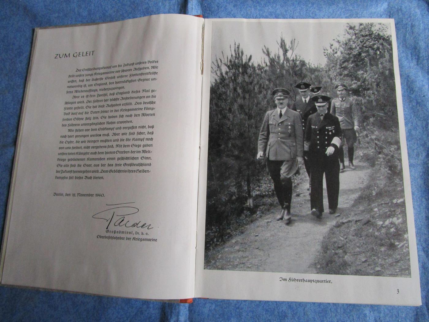 Beau livre de la KM daté 1941. Format 25x18 cm, 240 pages. En TBE. Environ 800 photos. Première page avec AH. Prévoir 9.60 euros en colissimo ou 5.70 euros par mondial relay. Autres photos sur demande.