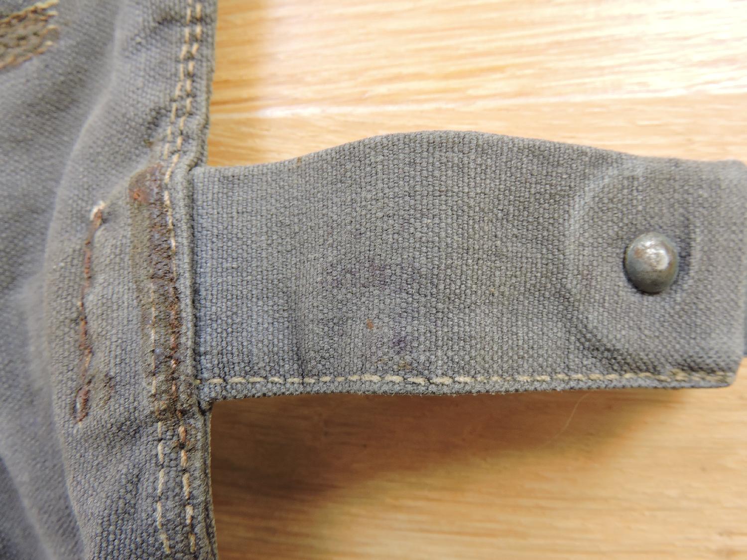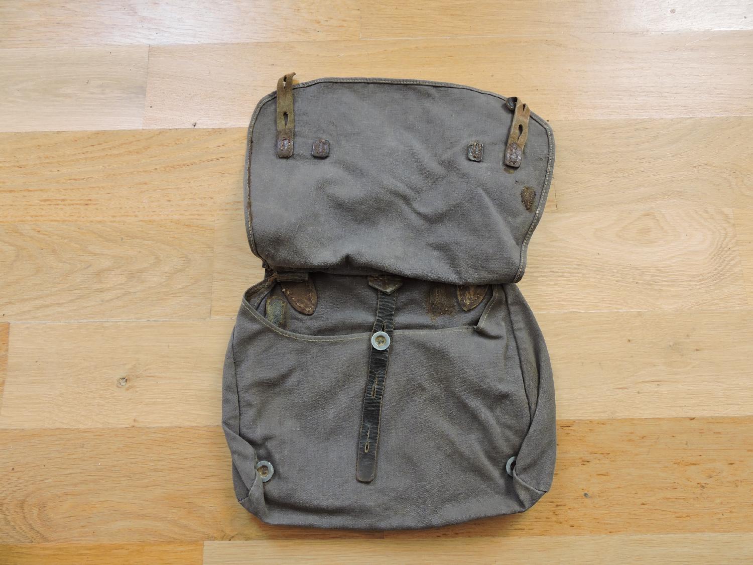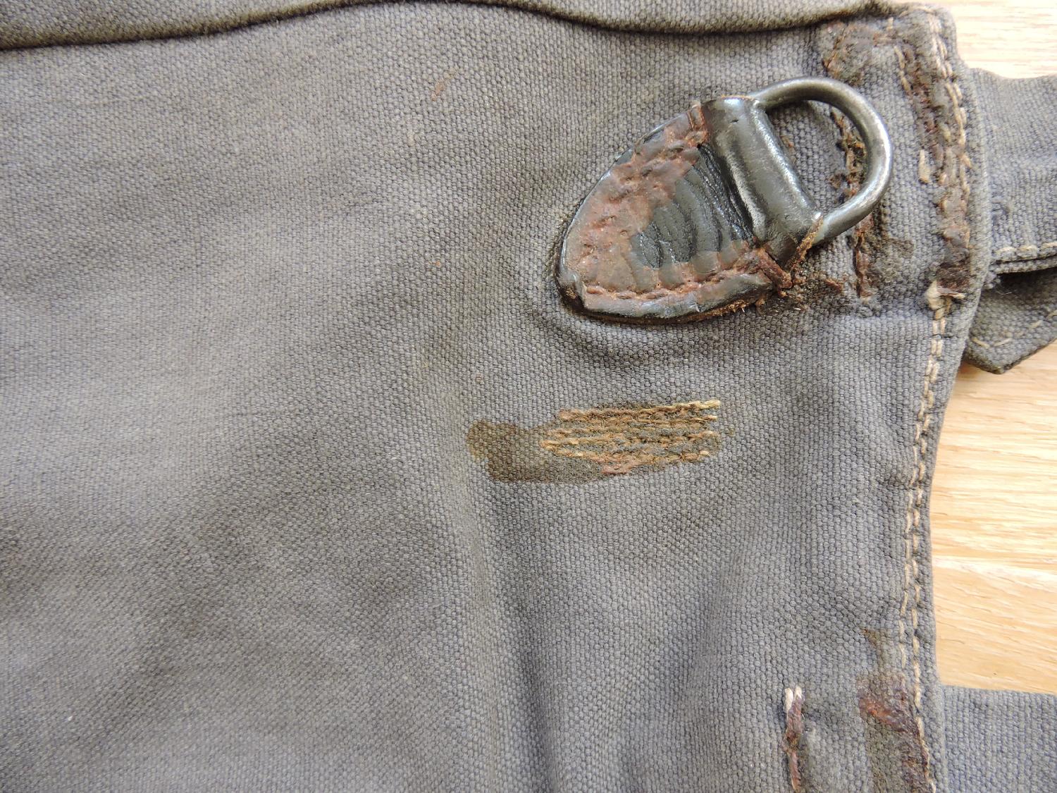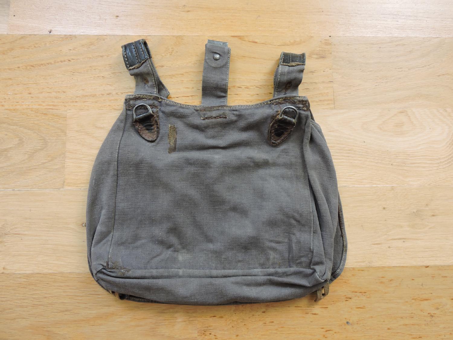 Sac à pain de la Luftwaffe. Marquages présents mais illisibles, quelques réparations d'époque.
