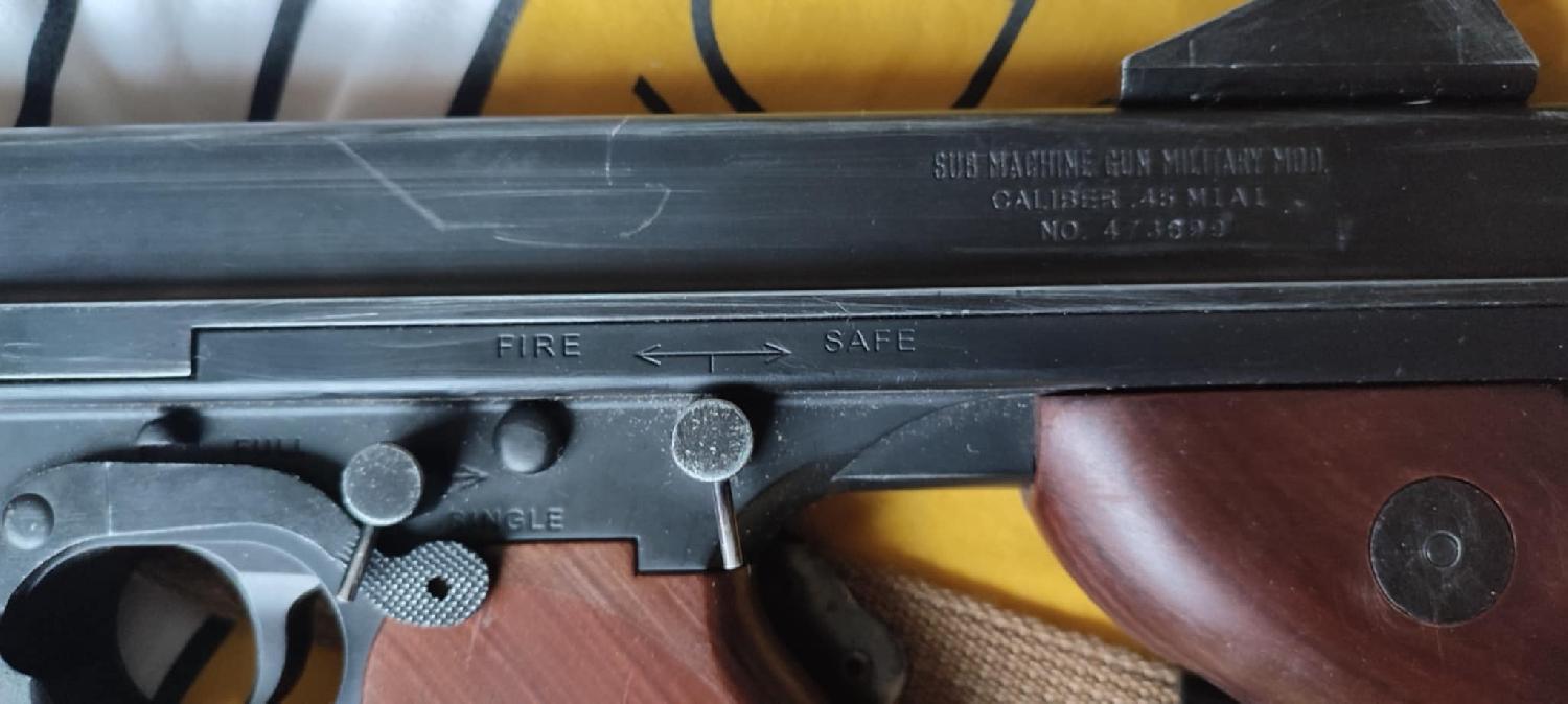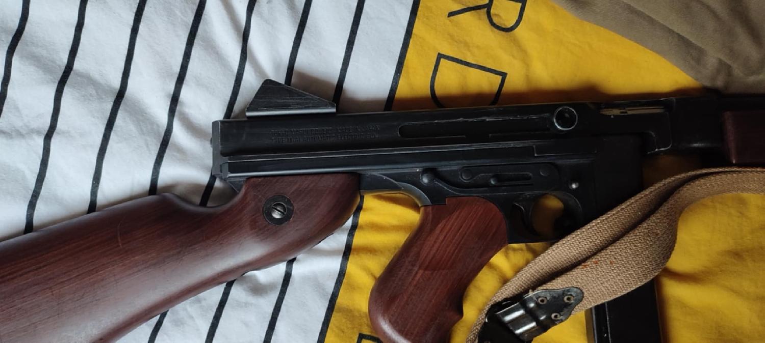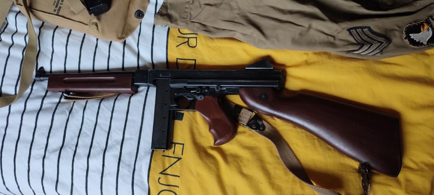 Réplique de la Thompson M1A1 par le fabricant "TOKYO MARUI Aeg AIRSOFT" devenue introuvable.