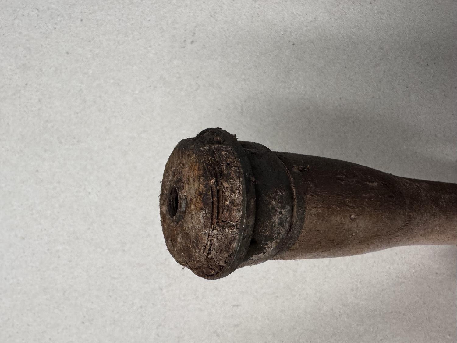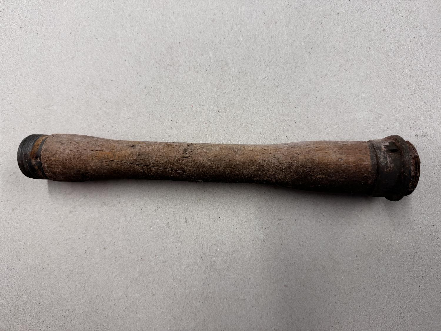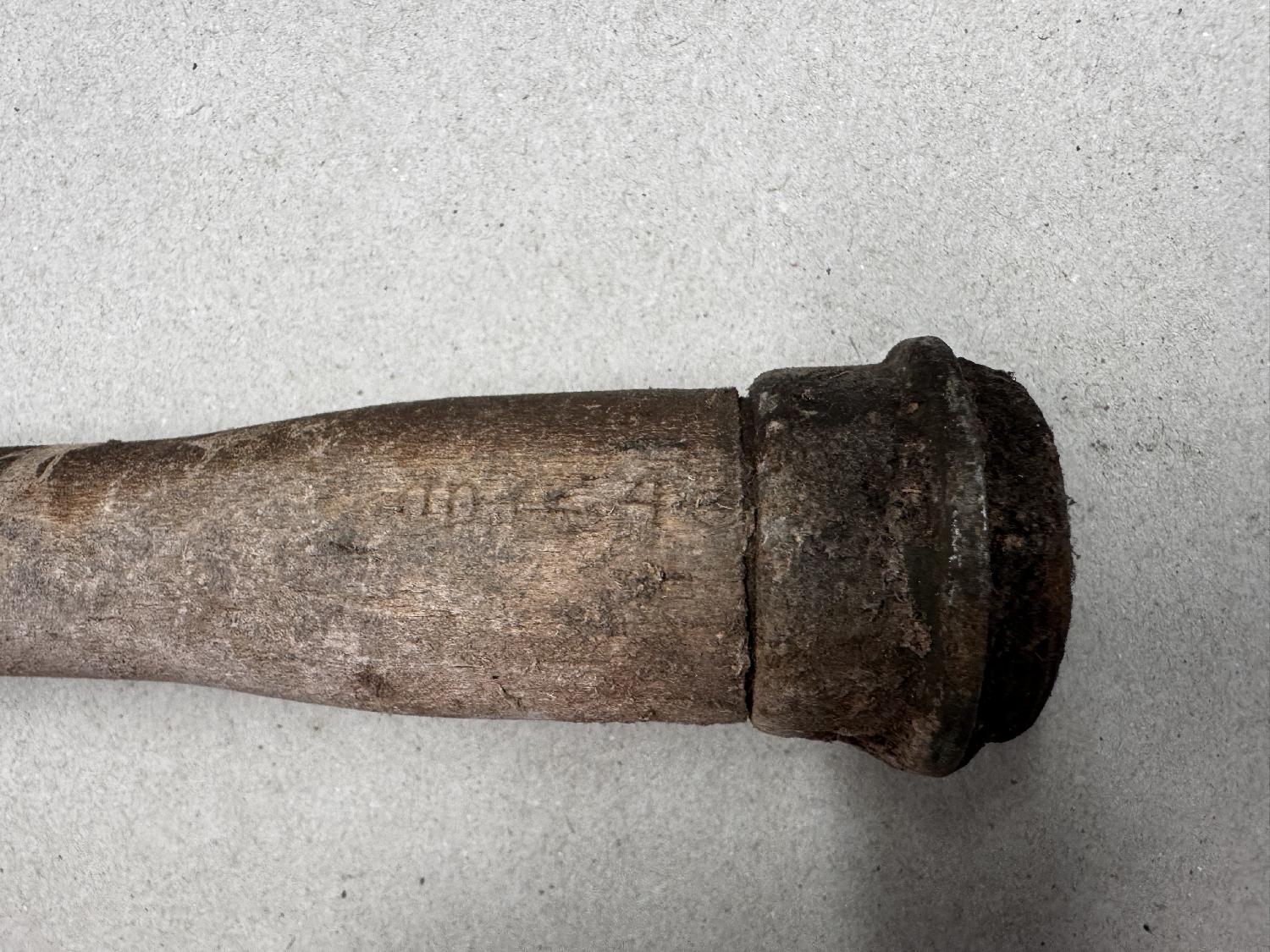 Vends ce manche en bois sorti de grenier , marquages présents , à nettoyer .