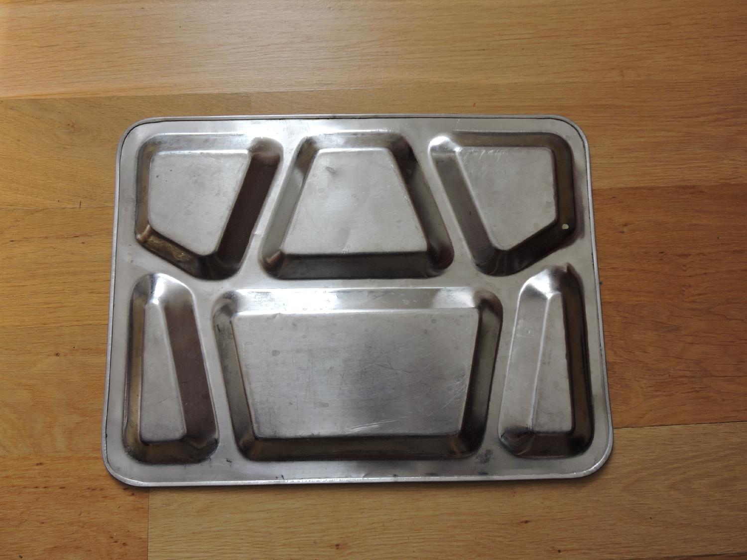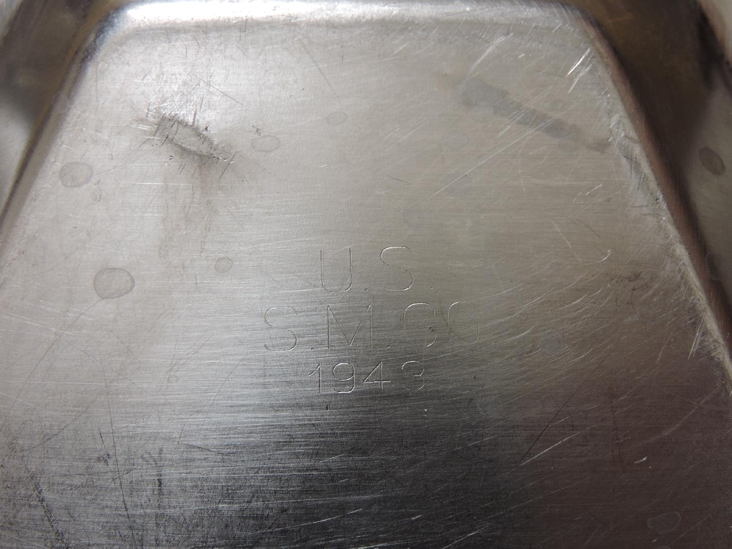 Plateau repas en inox daté 1943 et marqué US S.M.CO.