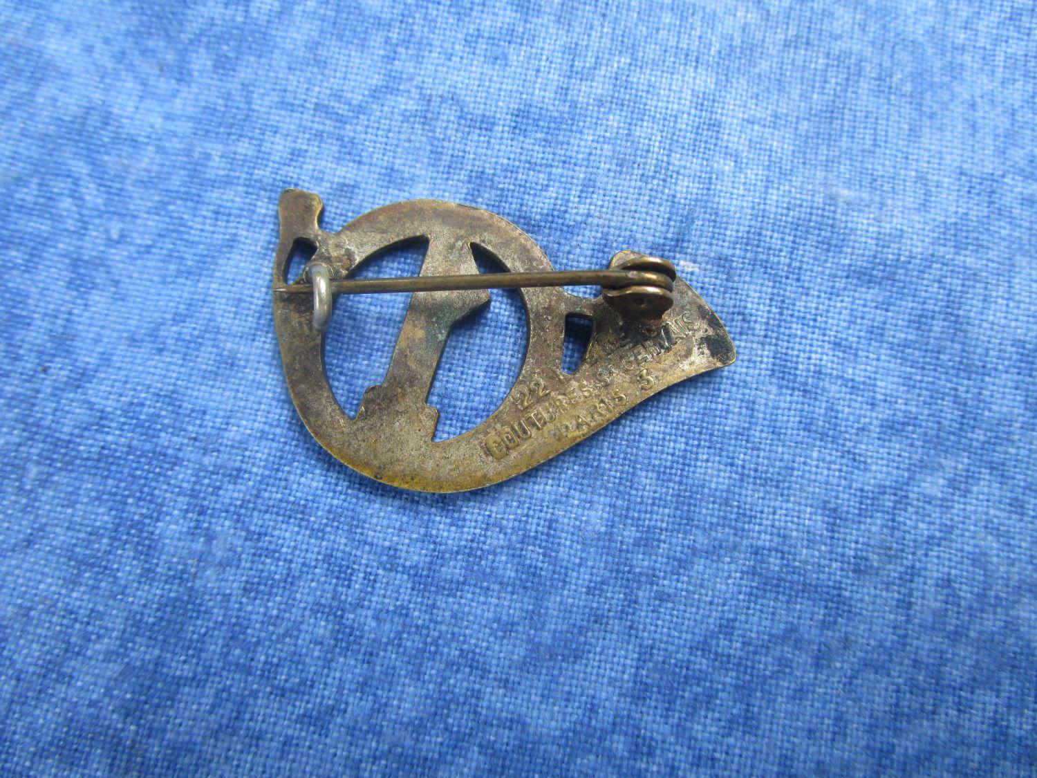 Difficile à dater ! , 39/40 ou après. Modèle en laiton, 30 mm de large. Fabricant non visible, adresse "22 ...coutures st gervais Paris 3". Prévoir 1.55 euros en lettre verte ou 2.15 euros en lettre verte suivie.