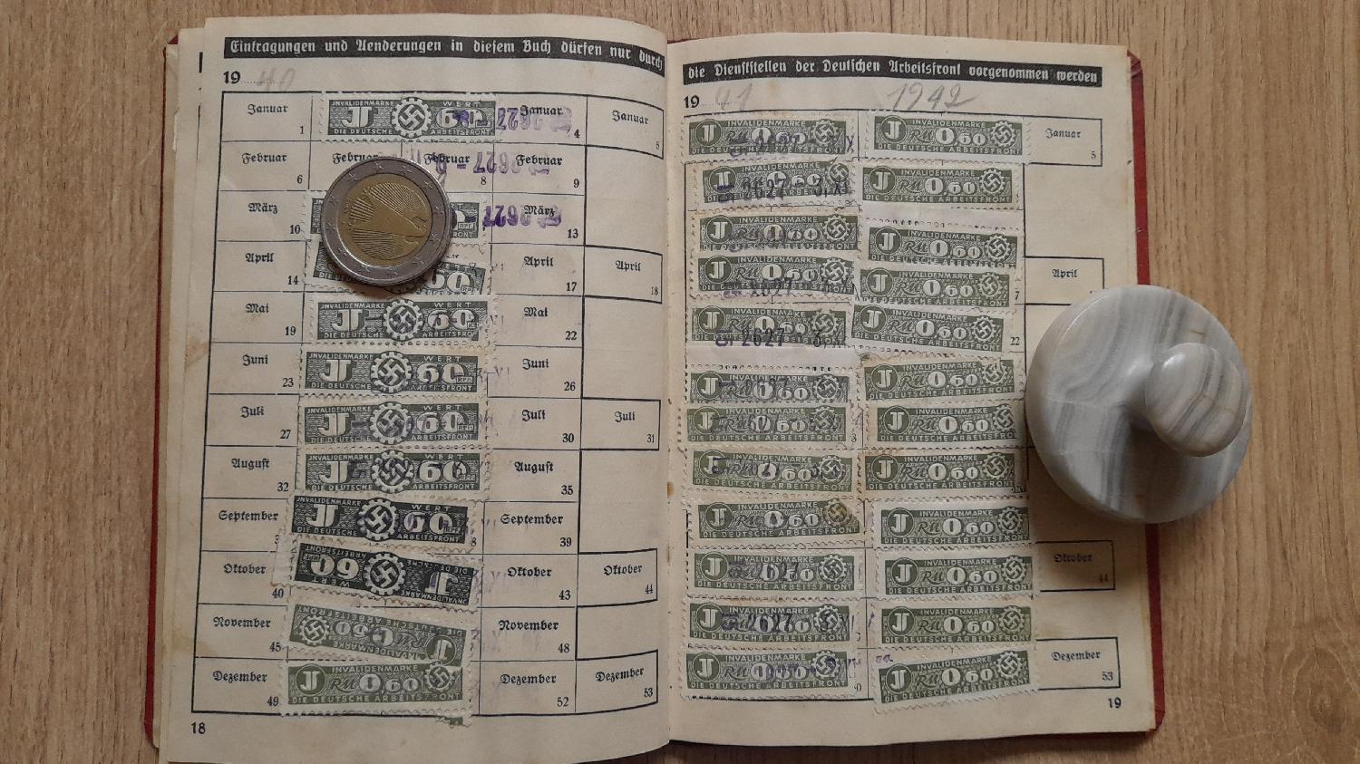 Livret du Deutsche Arbeitsfront (DAF) plein de timbres !