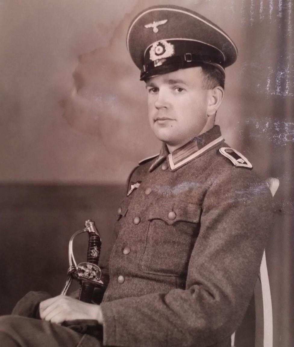 Photo d'un Feldwebel WH avec sabre prussien infanterie (très grand format)