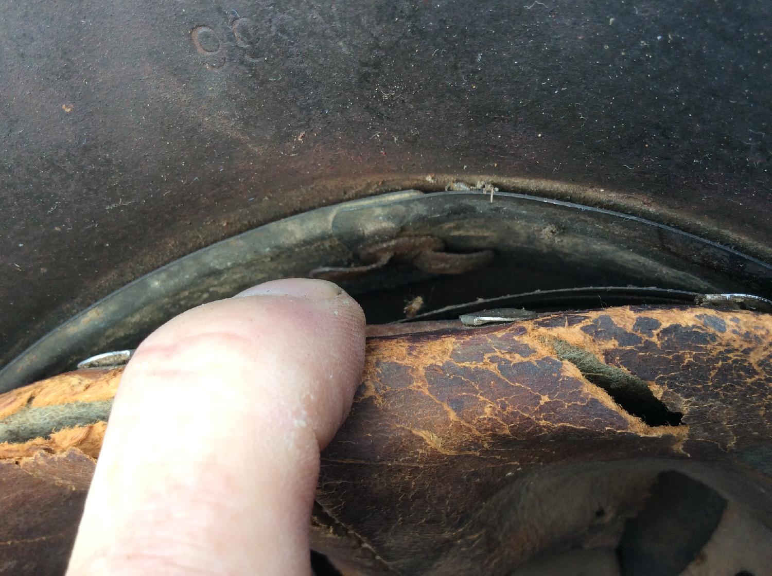 Le cuir est complet avec un nom difficile à lire, il est craquelé sur son pourtour mais très bien conservé, la feutrine est bien présente. Une pièce superbe.