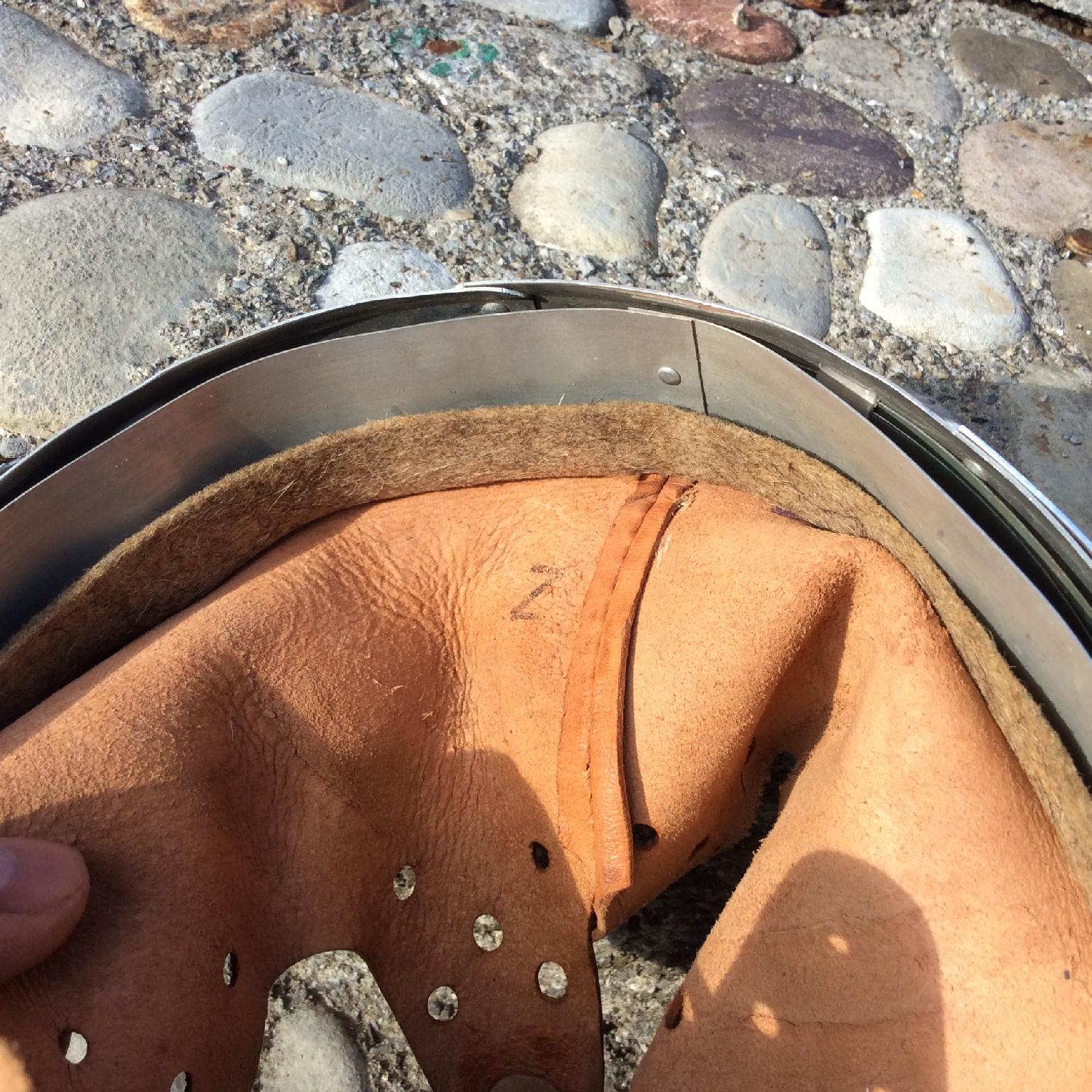 Intérieur de casque M35 et rivets proche du neuf