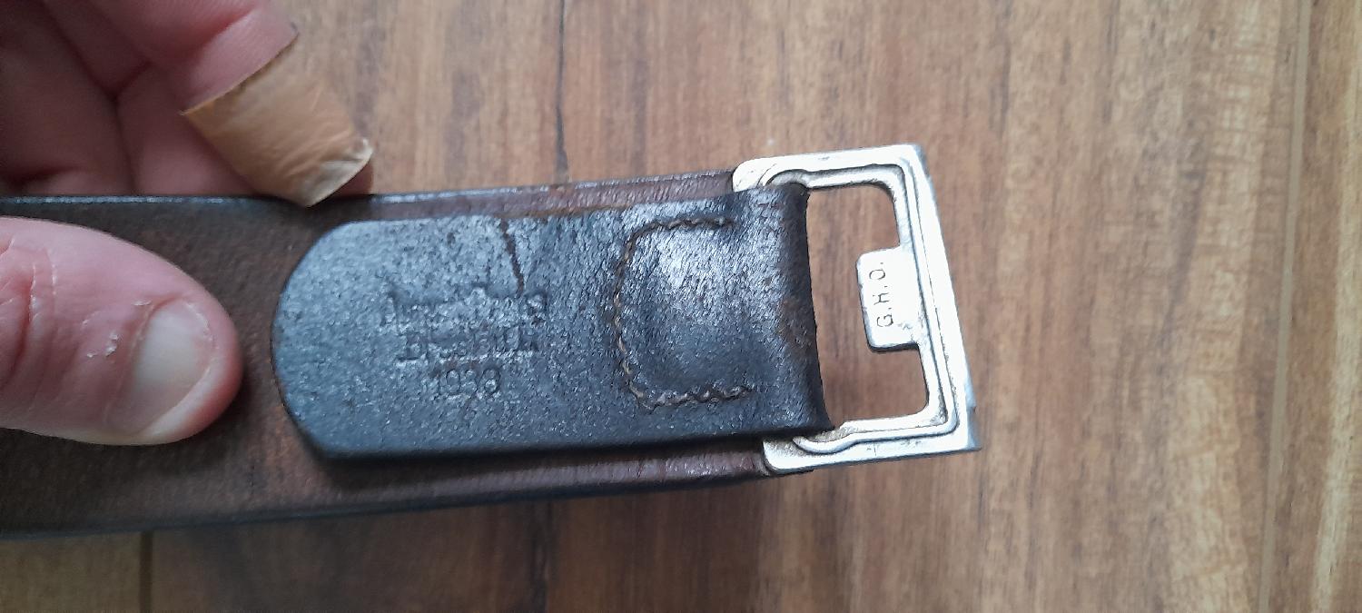ceinturon daté 38 avec noms du fabricant illisible.il est coupé au bout.