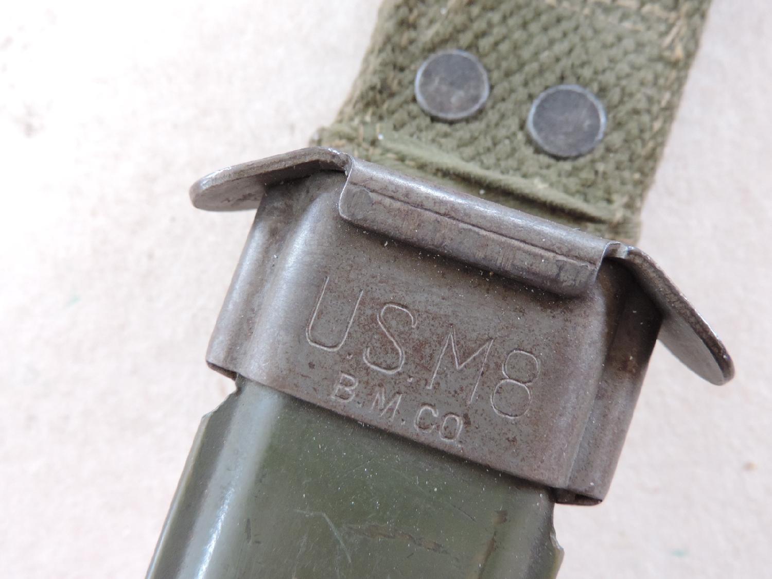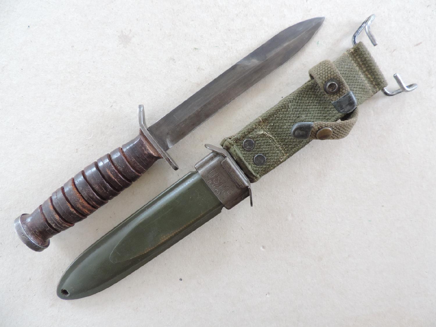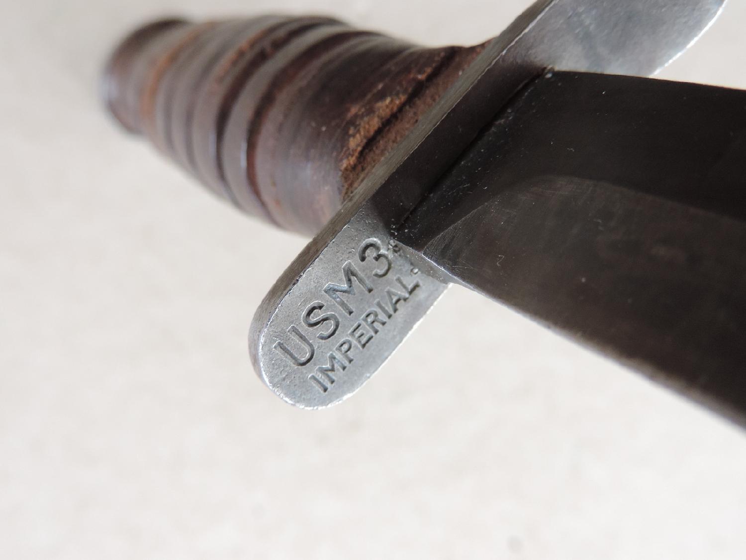 USM3 marquage garde fabriqué par Imperial Knife Cutlery. Le fourreau est un USM8 BMCO US WW2, dit du 2ème type. Descriptif et dossier photos complet dispo. Frais de port à définir.