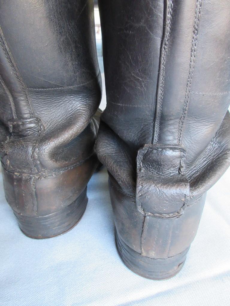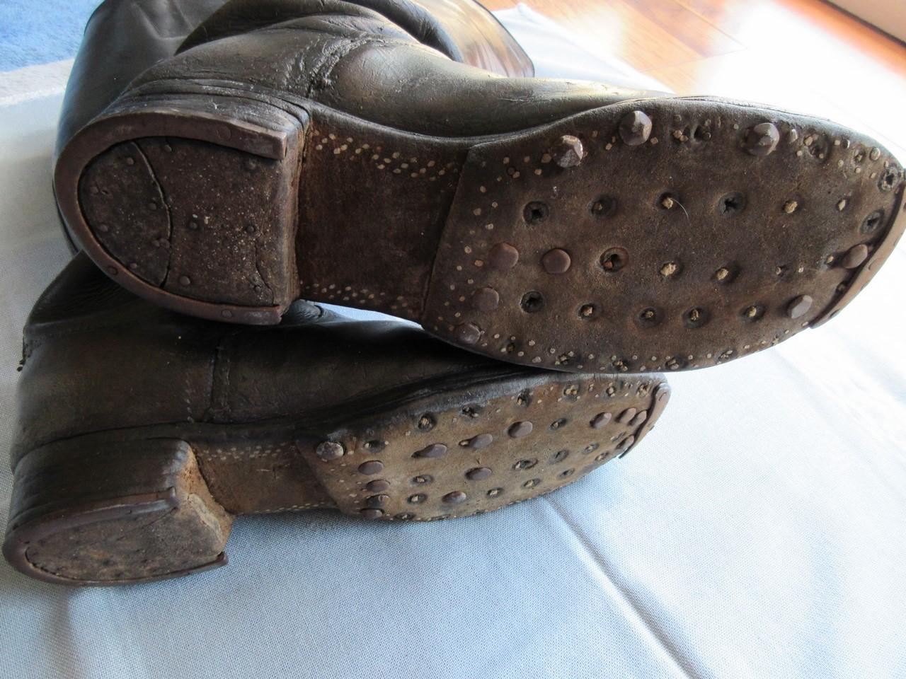 Grande taille / Cuir souple / Manque des clous aux semelles / Réparations aux deux talons / Port à prévoir / L : 30 Cm / H : 40 Cm