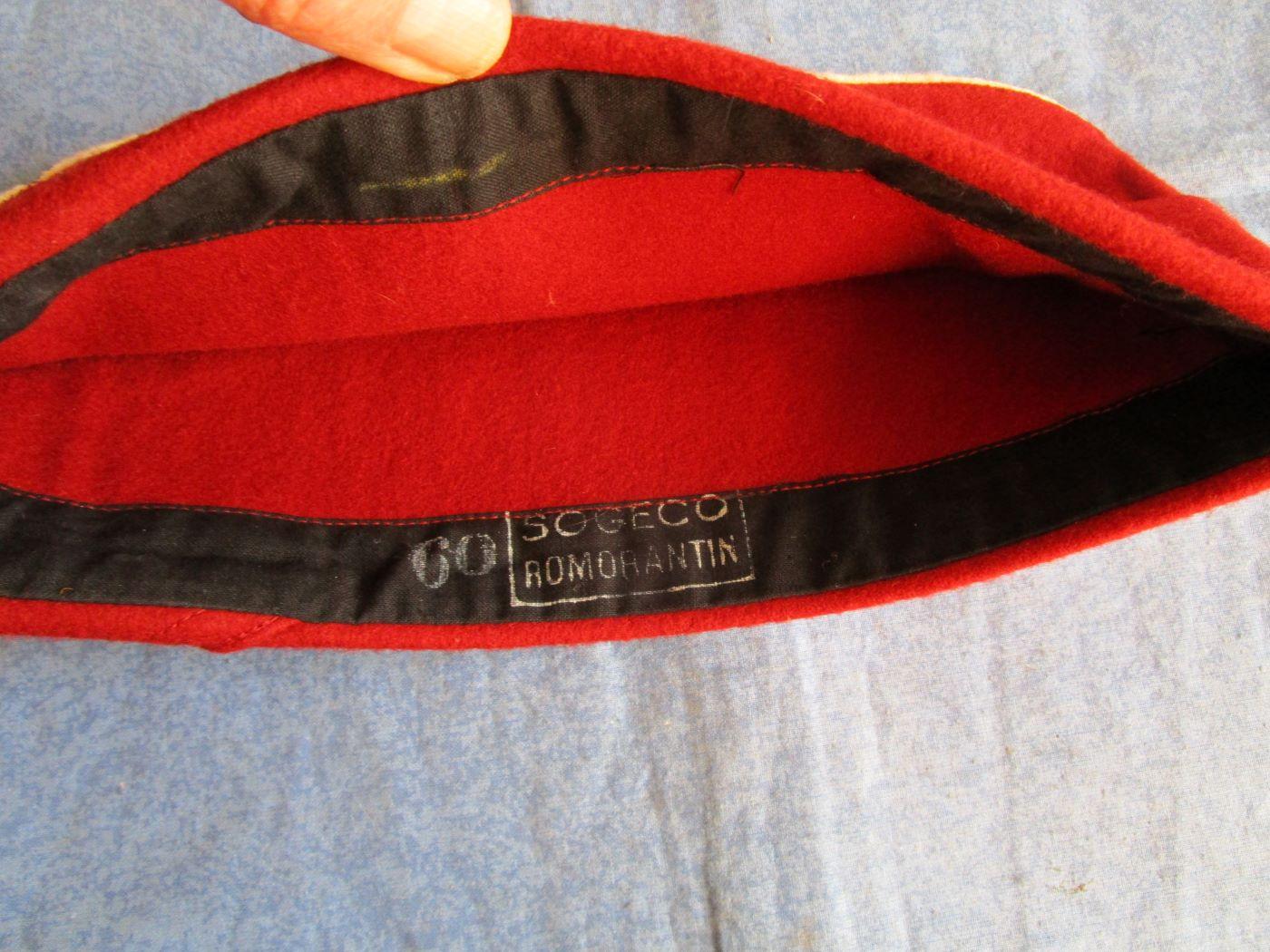 Bonnet modèle 57 de spahis (Oran) algérien ou tunisien. Taille 60. Faize blanche. 6 petits trous de mites sur la faize. Prévoir 5.50 euros en lettre verte ou 4.10 euros en lettre verte suivie.