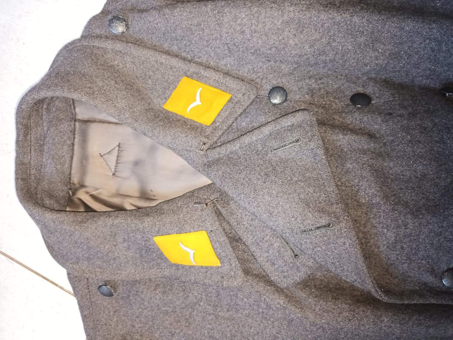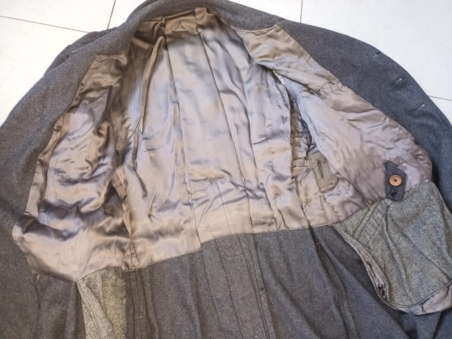 Très belle capote du mod 41 Lw avec rare insigne de conducteur Lw sur manche gauche. Pattes de col cousue d'origine sur le col comme souvent avec modifications de la patte sous le col pour fermer ce dernier. Dans la longueur d'origine. Petit trou de 8mm sur épaule au dos droit. Belle doublure rayonne grise avec marquage bien lisible. Laine en TBE dans l'état de découverte. Taille assez grande pour un homme 1m80 95kg. Livraison offerte mondial relais payable avec PayPal de préférence entre proche.