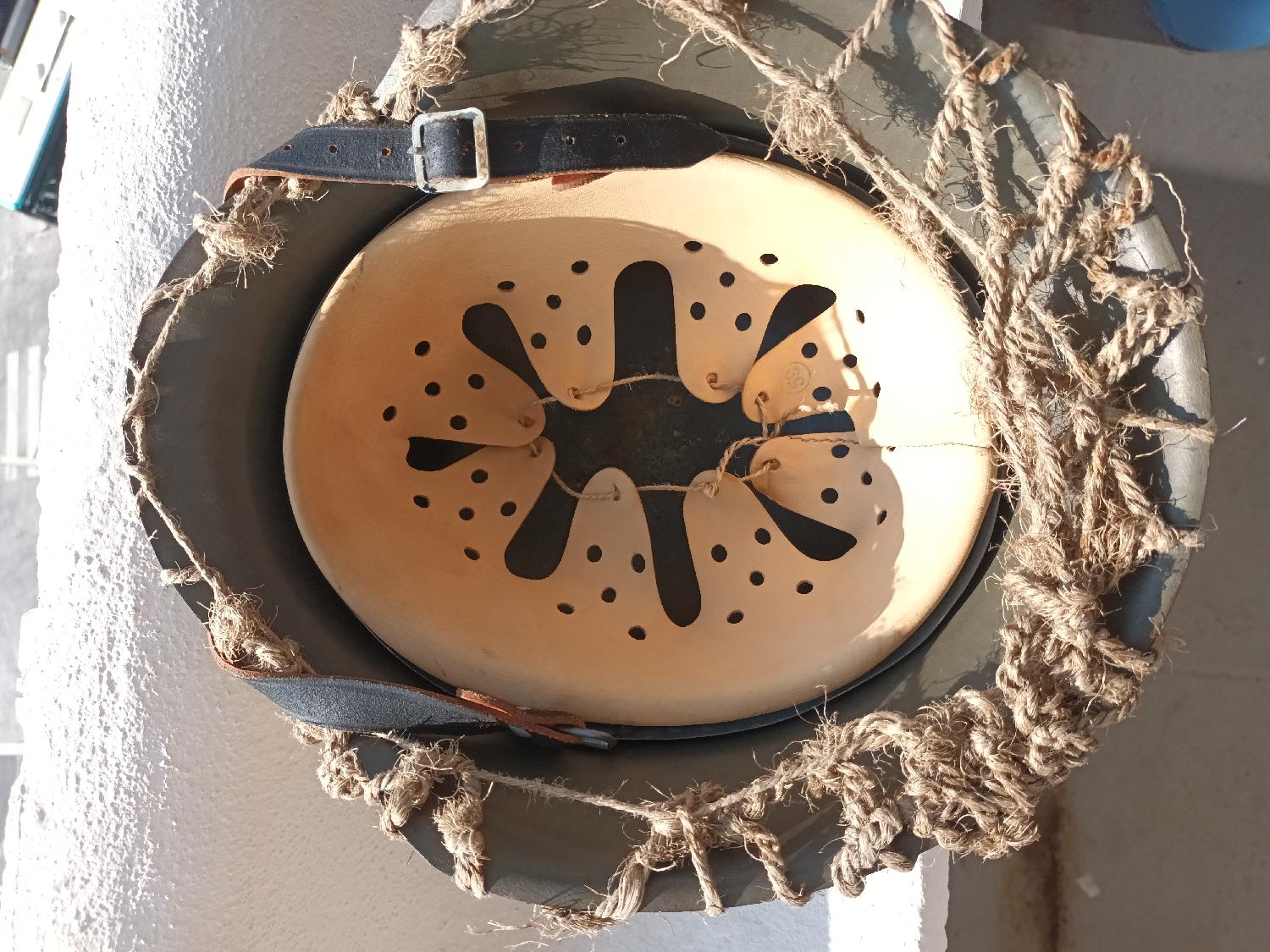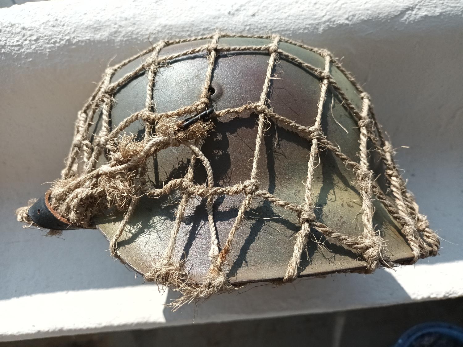 Super 42 camouflé type Normandie avec filet complet. Coiffe 57 et jugulaire en TBE. Coque d'origine restauration de qualité effet remarquable. Belle pièce à saisir pour reconstitutions ou compléter mannequin pour un prix abordable. Livraison offerte par mondial relais payable de préférence avec PayPal entre proche.