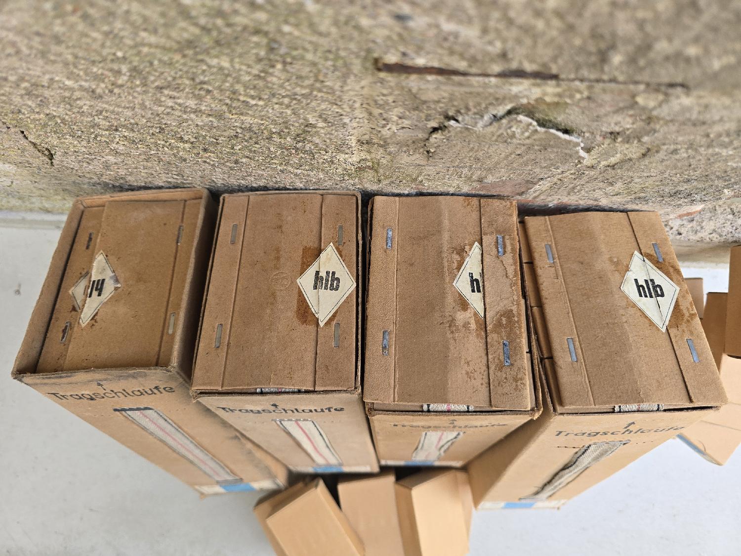 Rare lot de 4 Tragschlaufe pleine de leurs 60 boîtes vides tout au numéro ( 2 boites hlb 1. L 43 ET deux boites hlb 3.L 43 ) équivaut au contenu d'une caisse de 900 cart.