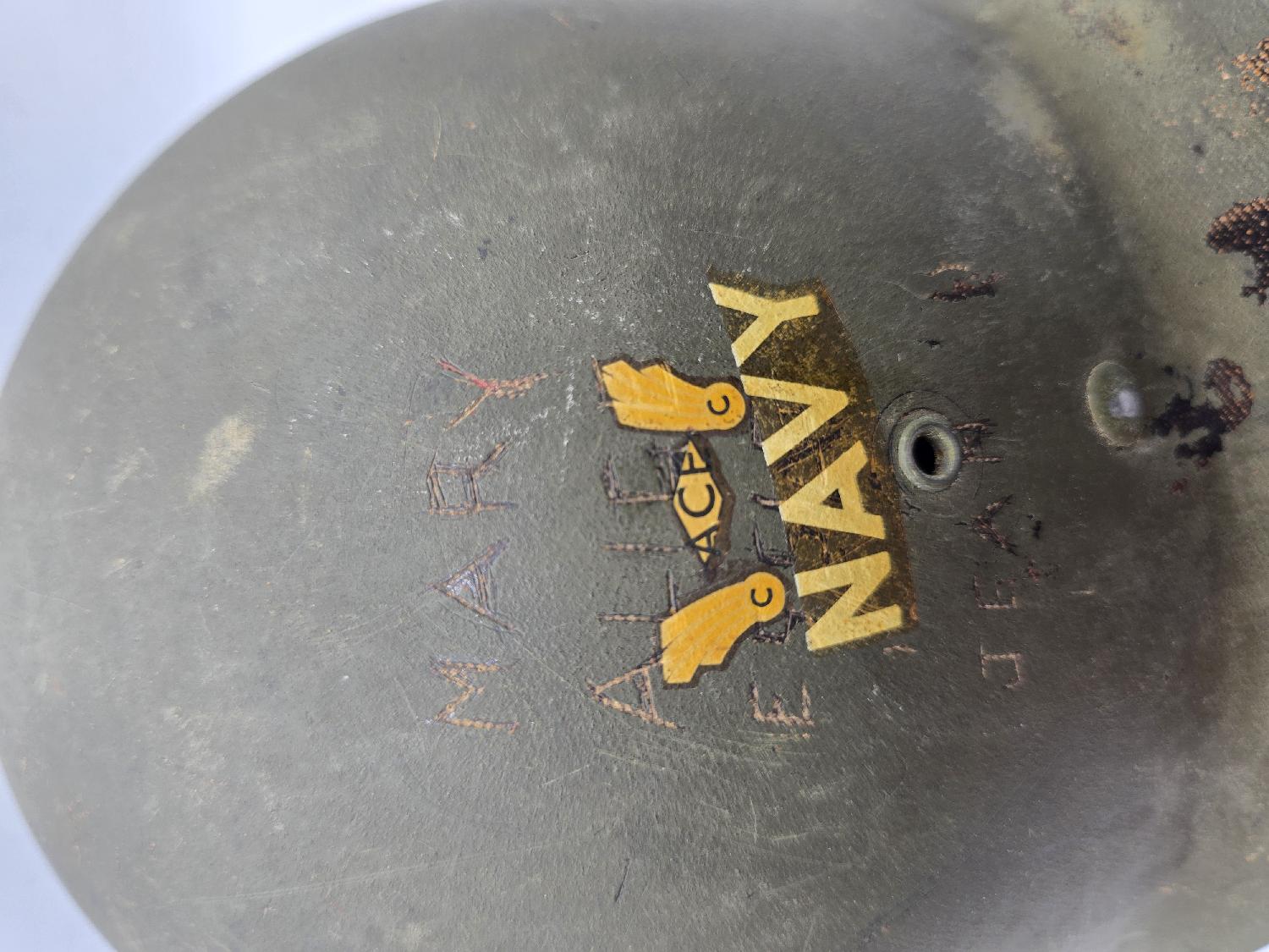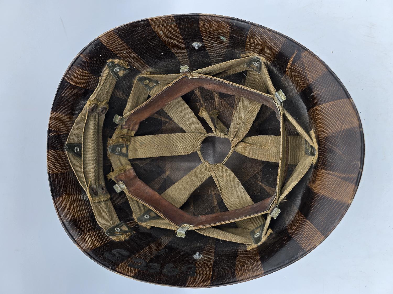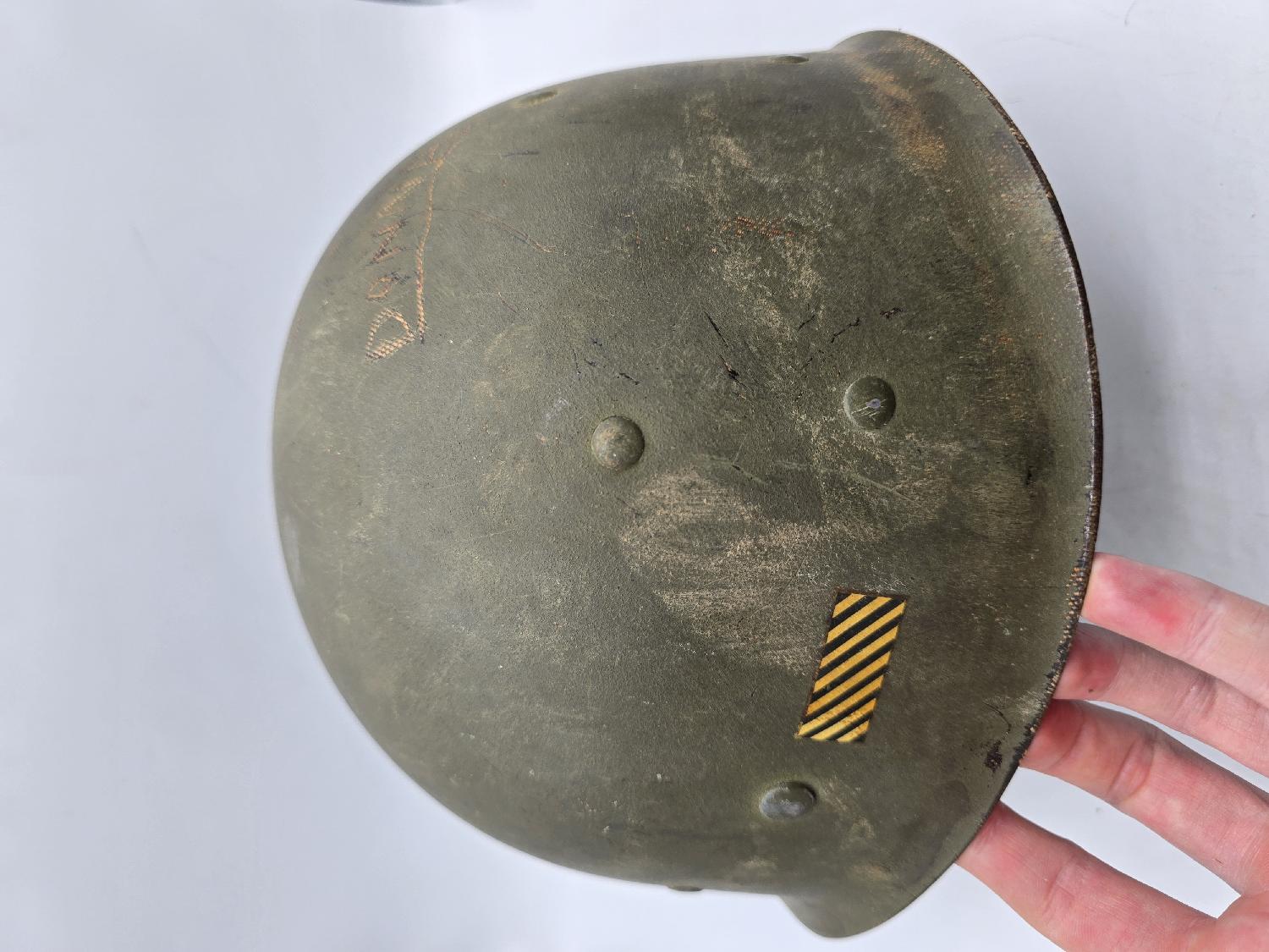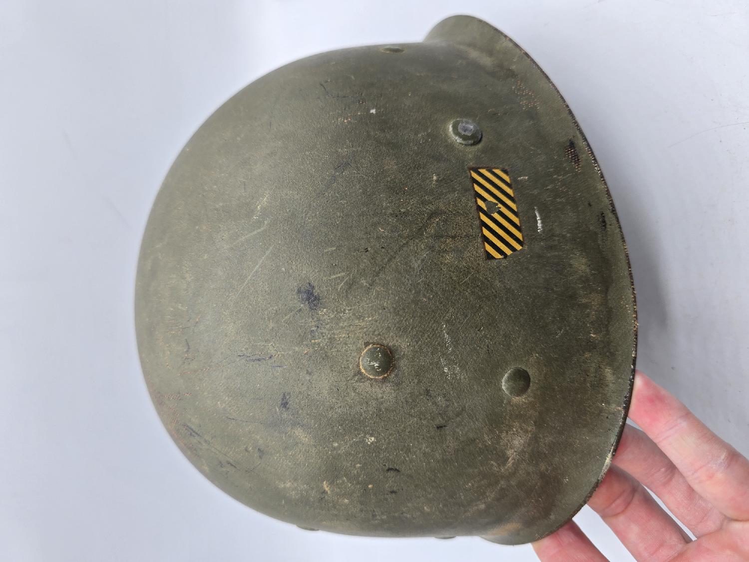 Très jolie sous casque fabrication Westinghouse. Personnalisé. 5 nom de femme y sont gravé. La personnalisation à l'avant et sur les côtés sont du papier collé. À l'intérieur en noir, le laundry numbers S2369 y est lisible.