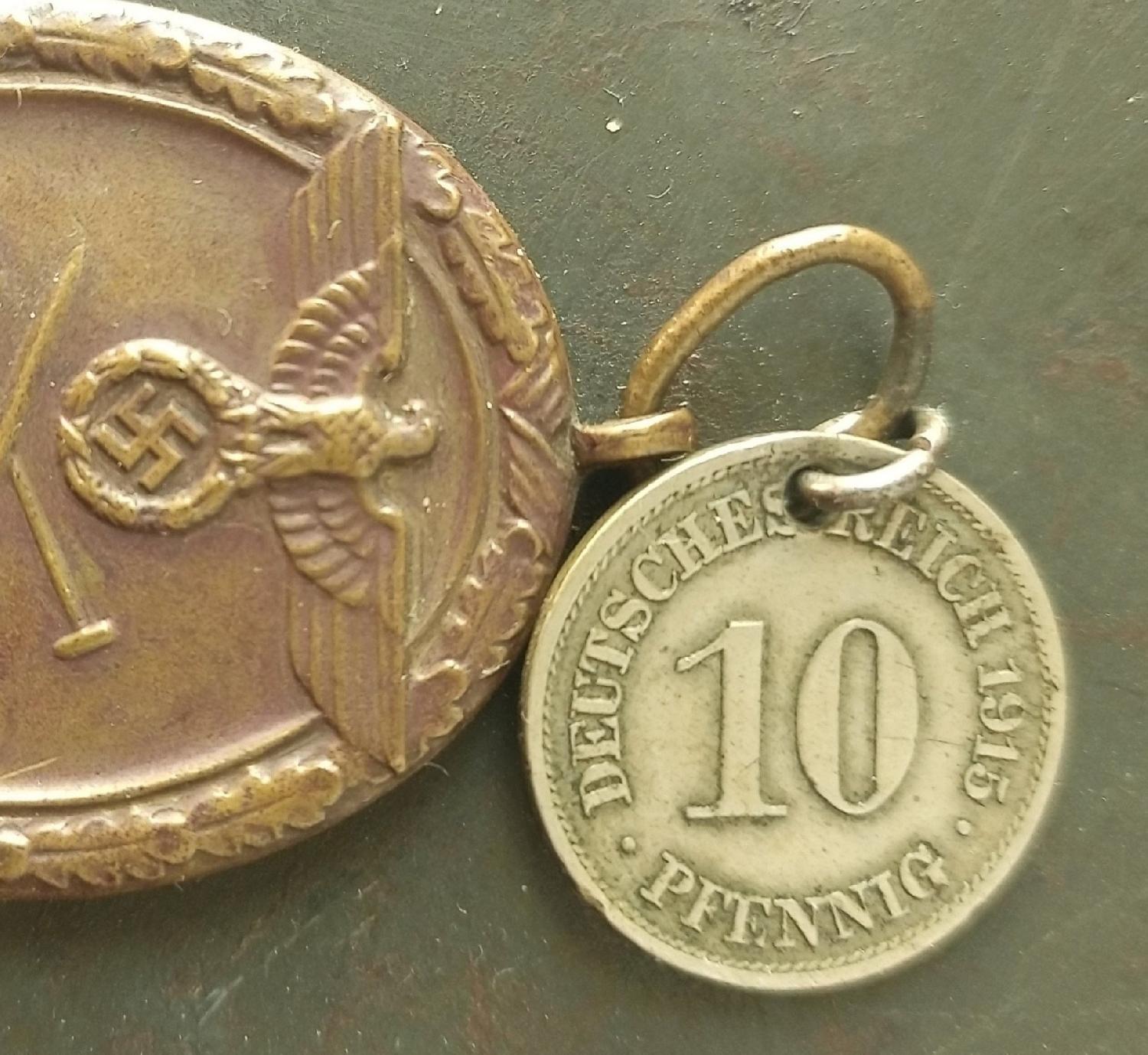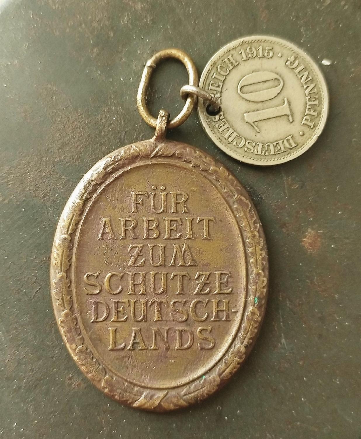 Médaille dite des fortifications, trouvée telle que, sans ruban, avec cette pièce de 1915.