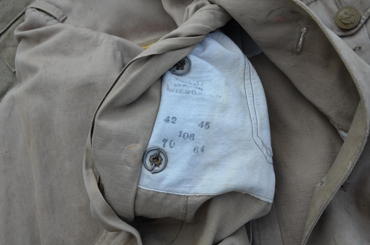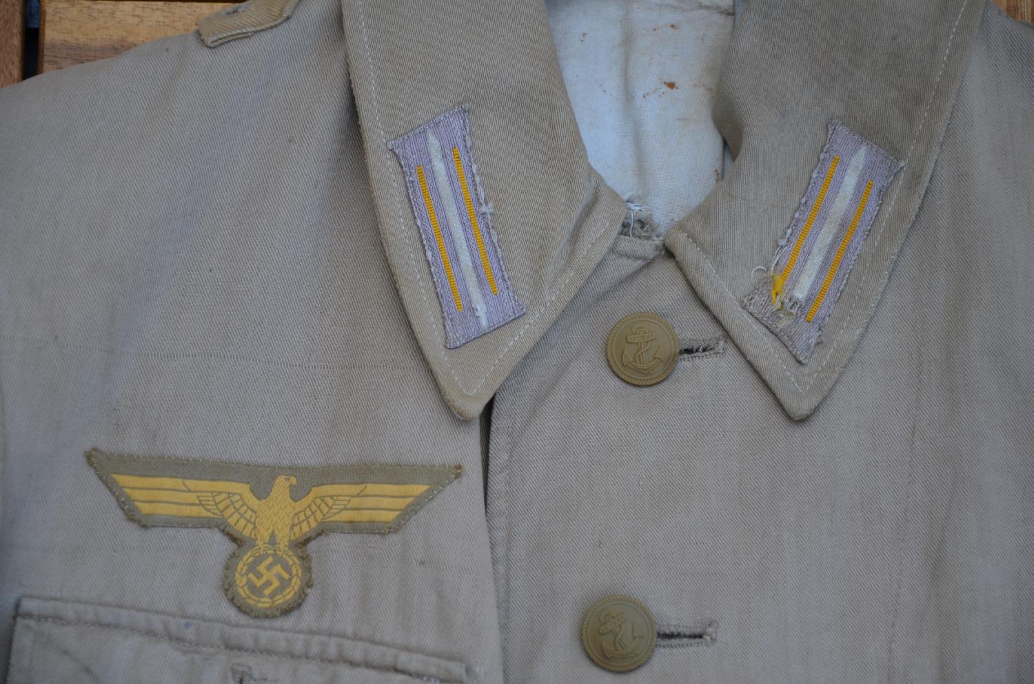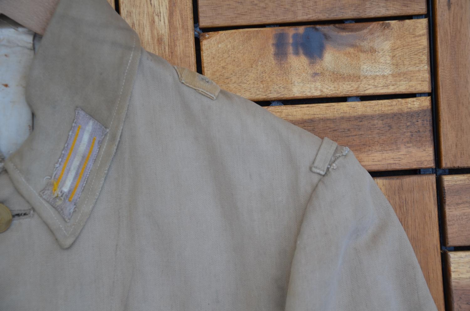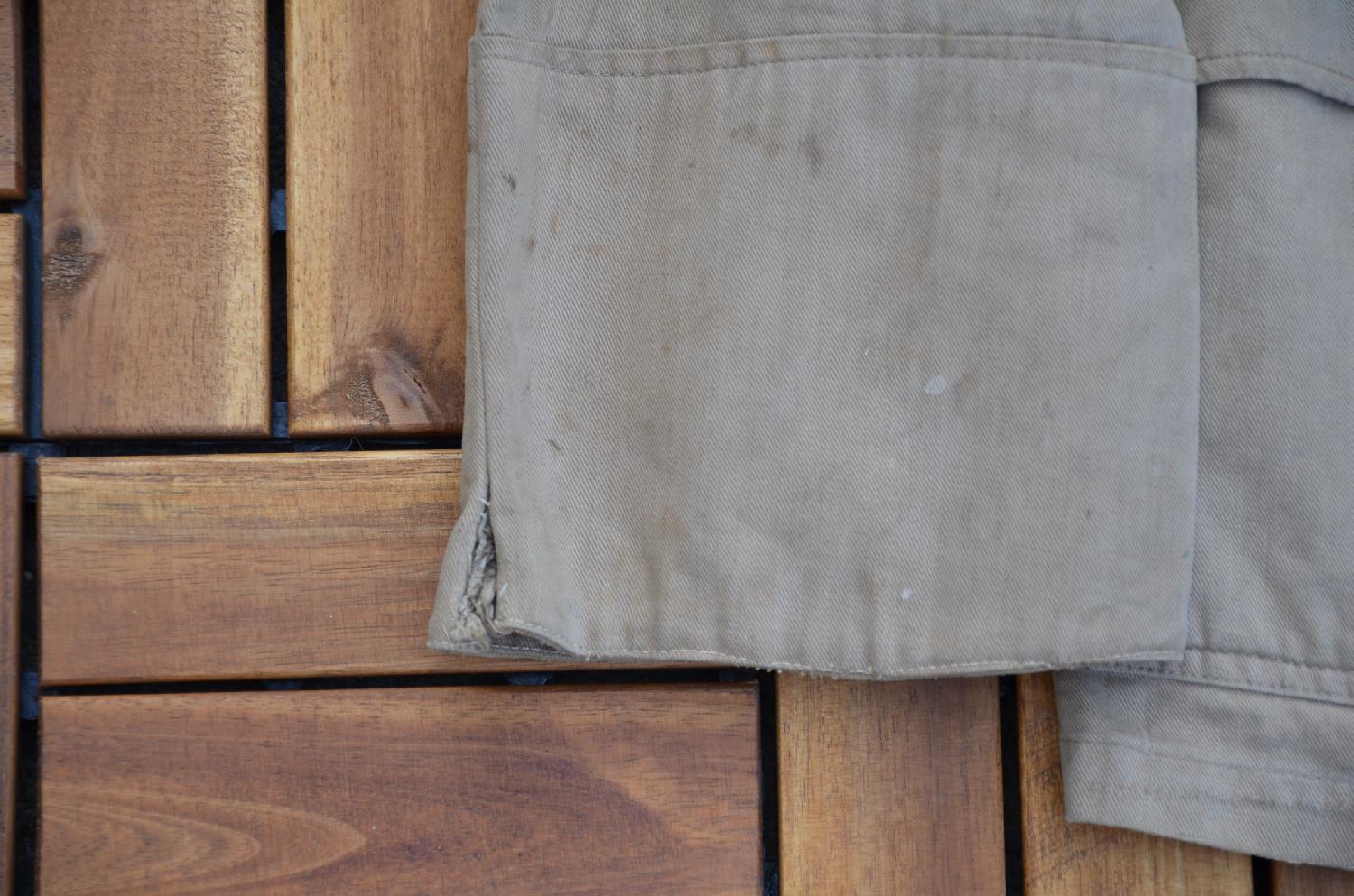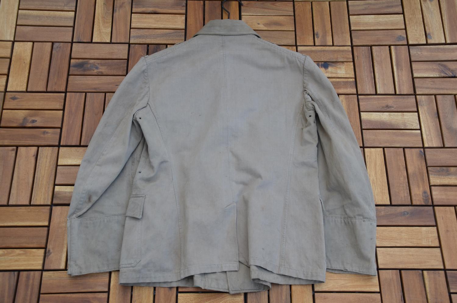 Veste en toile de la KM, petite déchirure au bas de la manche D.
