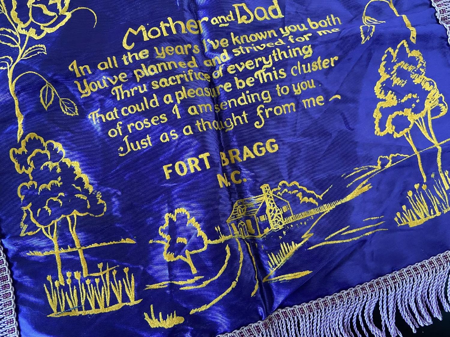 Housse de cousin Pillow Case ww2 de Fort Bragg, superbe etat vendu dans les PX de la base pour les soldats