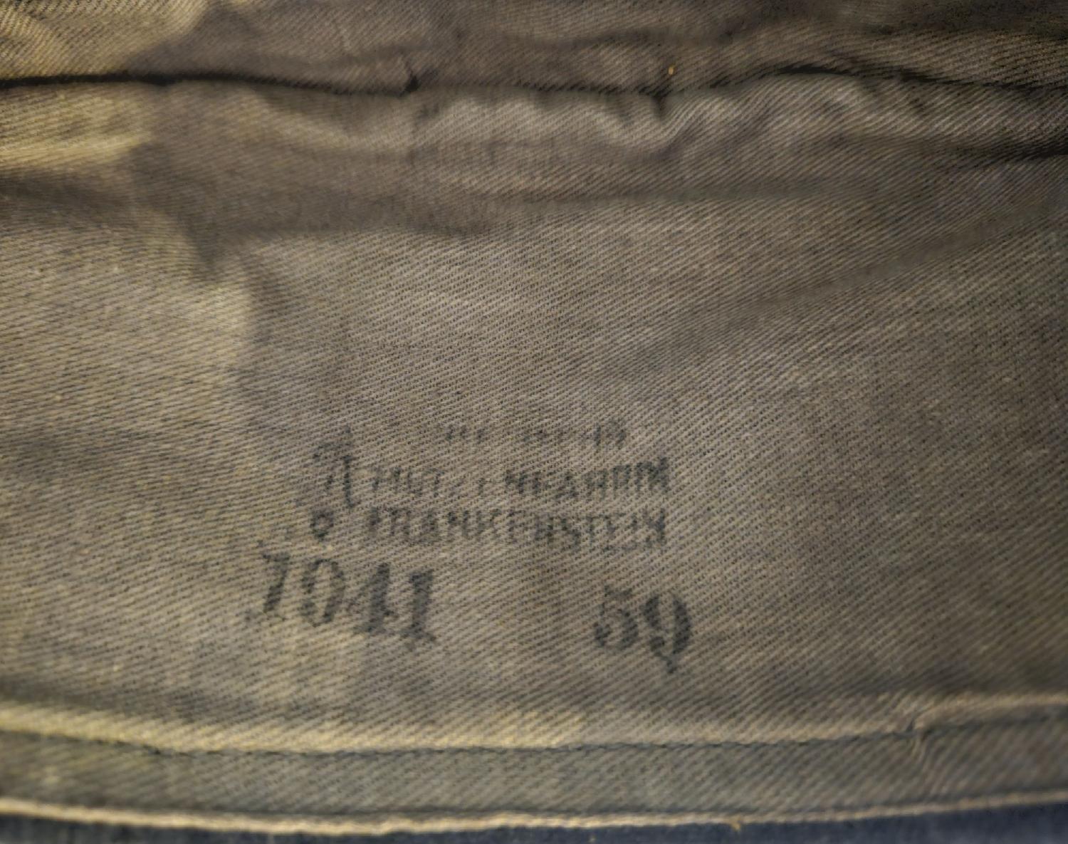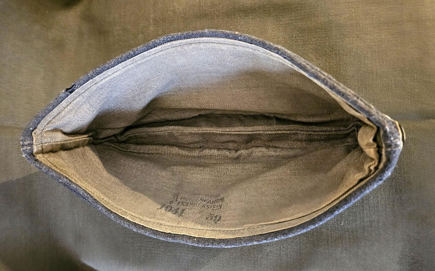 fabrication en drap gris-bleu avec aigle et cocarde pour hommes du rang cousus à la main. Intérieur avec doublure, fabricant MUTZEN FABRIK FRANKENSTEIN