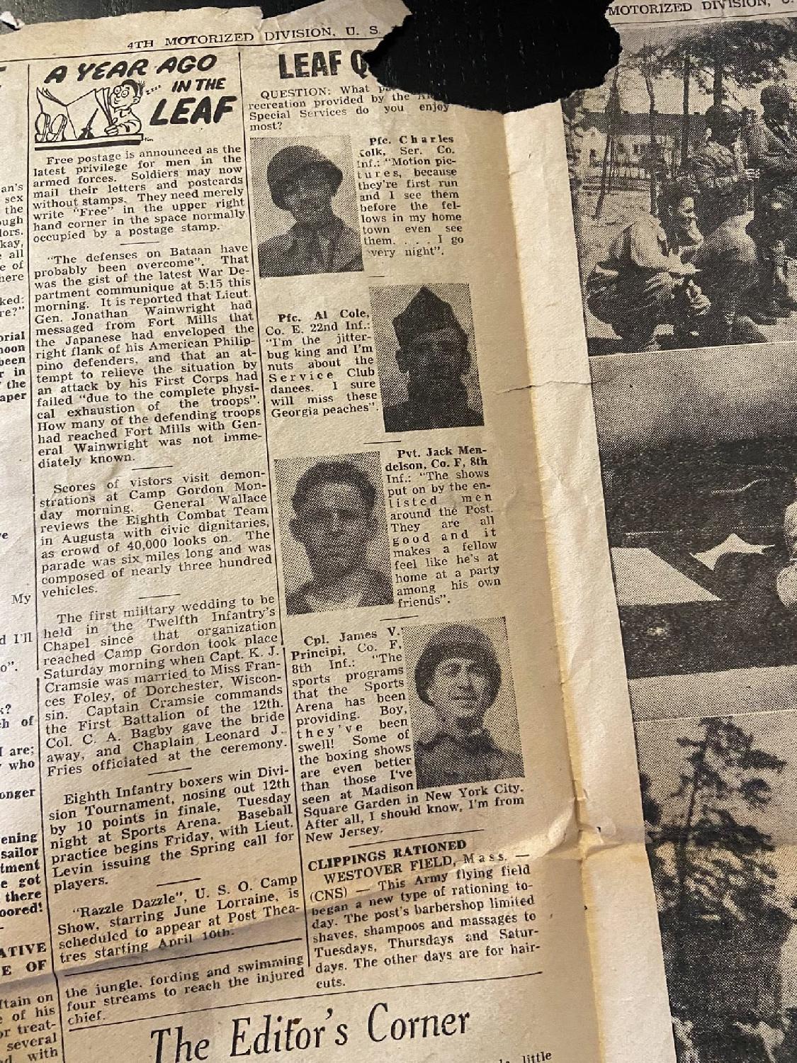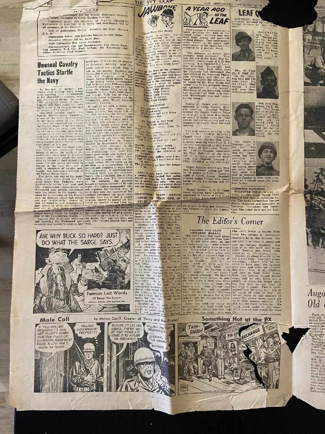Vend cause doublon, journal The Ivy Leaf de la 4th Infantry Division date du 9 avril 1943.