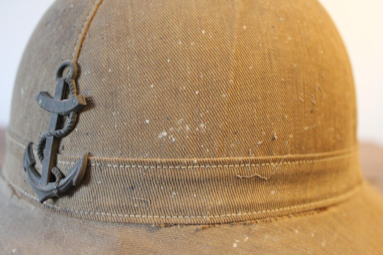 Bonjour, je vends ce casque M31 colonial, nominatif (Mantz). A l'interieur, il ne manque aucun petit bouchon de liège de calage de la coiffe. Francia & Ramazotti (fabriquant de Marseille), à l'interieur du tampon rond officiel, "4-36? Ancre en tombac. Tissus disparu sur le sommet par usure. D'autres photos sur demande. Dans son jus comme on dit. Par virement ou liquide en venant le chercher sur place (dans le département du Lot) ou envoi dans un joli petit colis. Voili voilà.