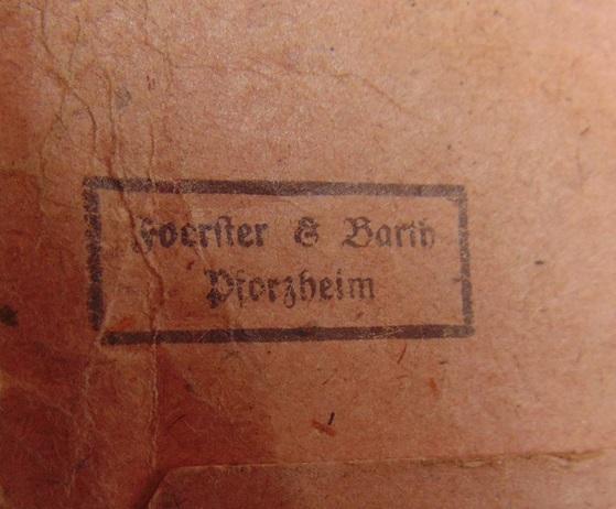 Marquage sur l'avant de la pochette 'Kriegsverdienstkreuz II mit Schwertern' et a l'arrière le nom du fabricant Foerster & Barth, Pforzheim.