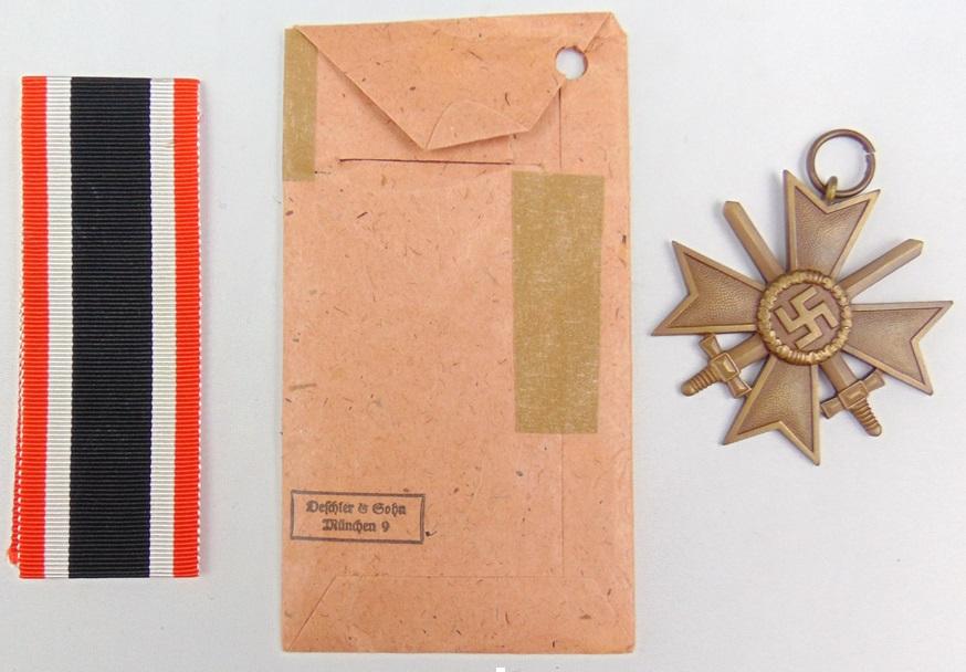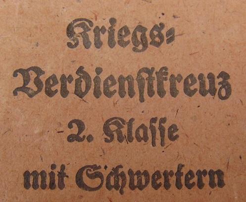 Marquage sur l'avant de la pochette 'Kriegsverdienstkreuz II mit Schwertern' et a l'arrière le nom du fabricant Deschler &Sohn, München