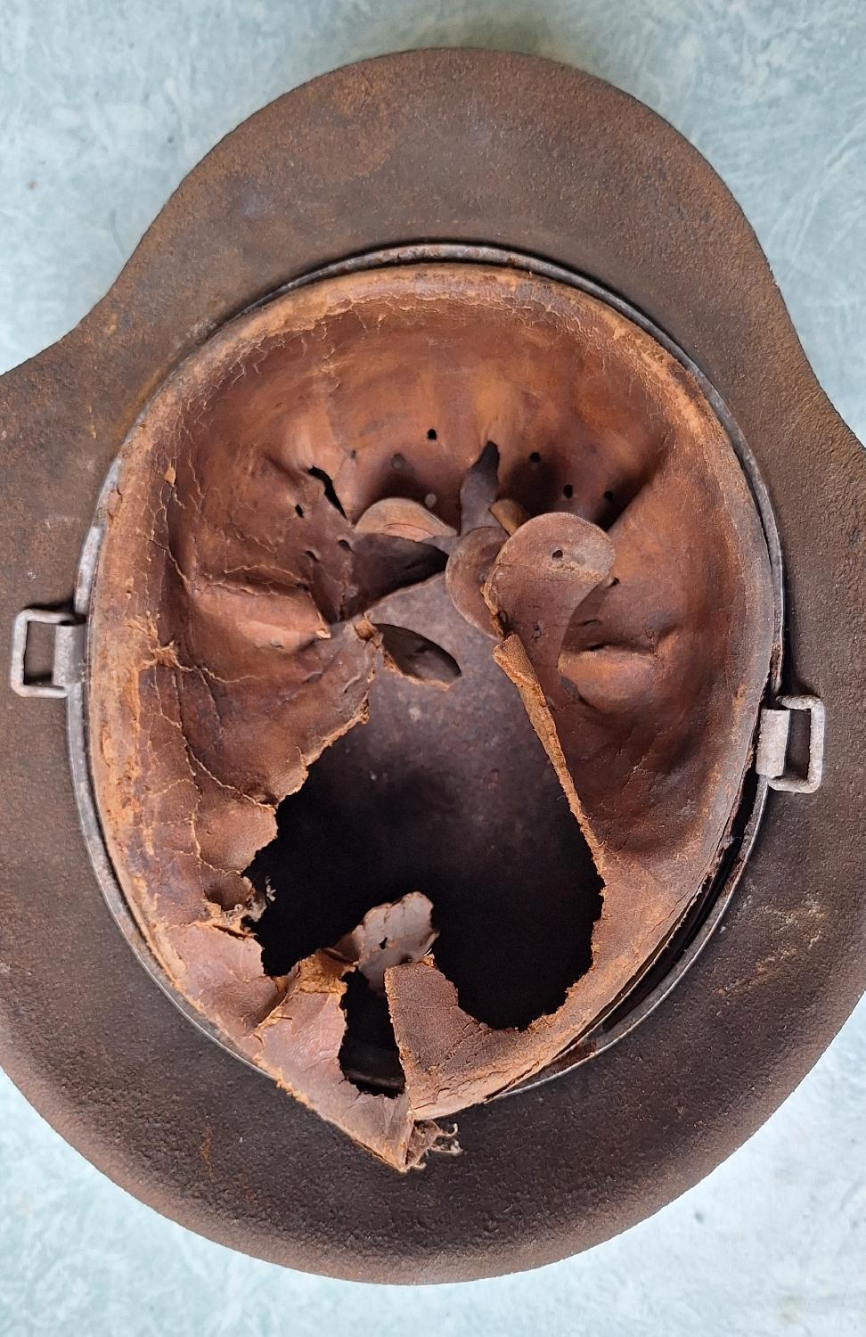 Casque retrouver en Belgique, dans une ferme a Tournai,pièces qui a bien barouder ,pur jus !!