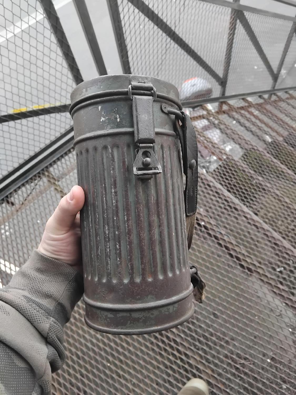 Bonjour je vend un mag avec boîtier court sans accessoires seul le masque anti gaz et le boîtier reste de peinture sur le boîtier et un reste de grande sangle la petite sangle pour le ceinturon est présente. Masque en caoutchouc noir en bon état.
