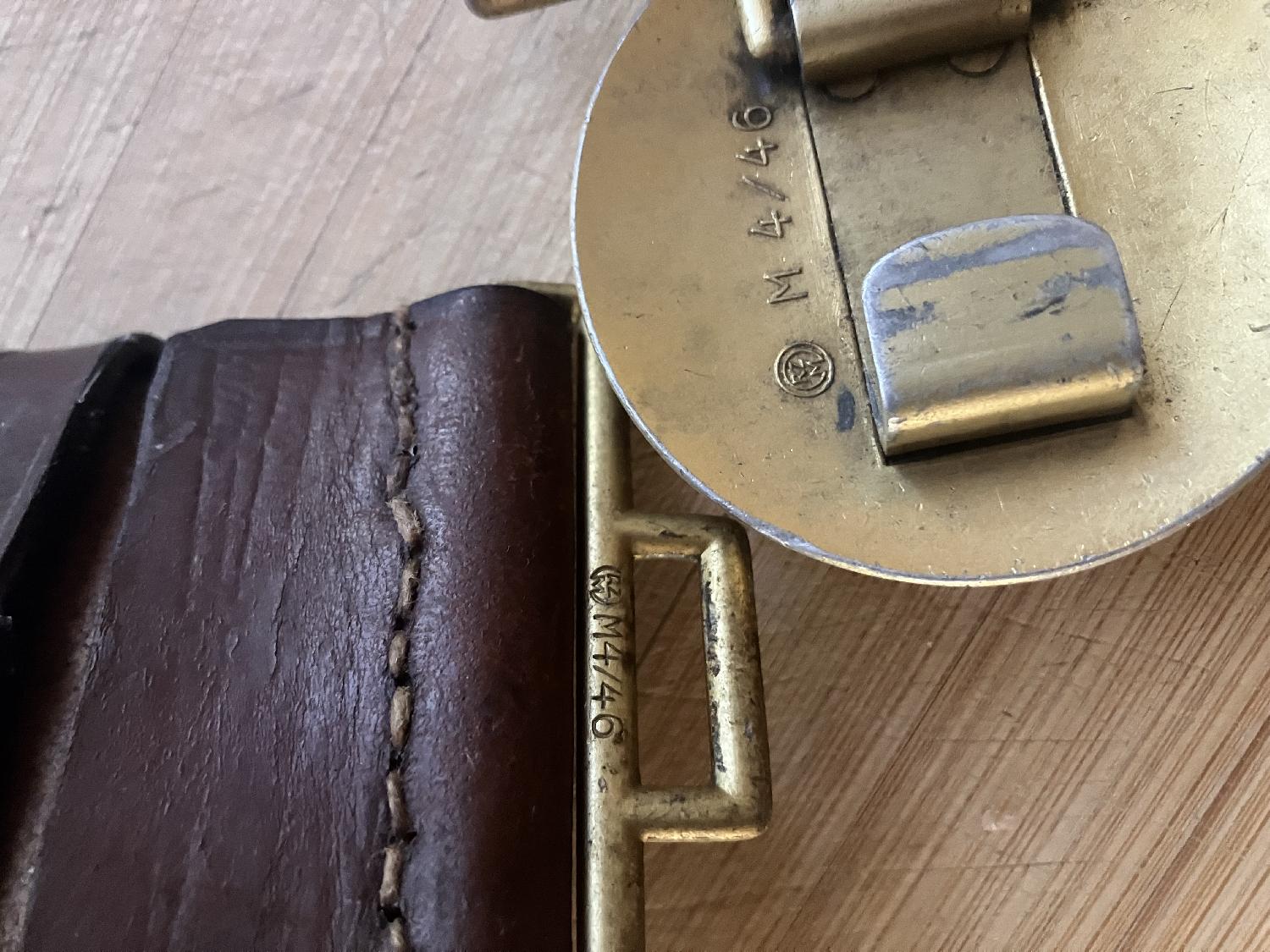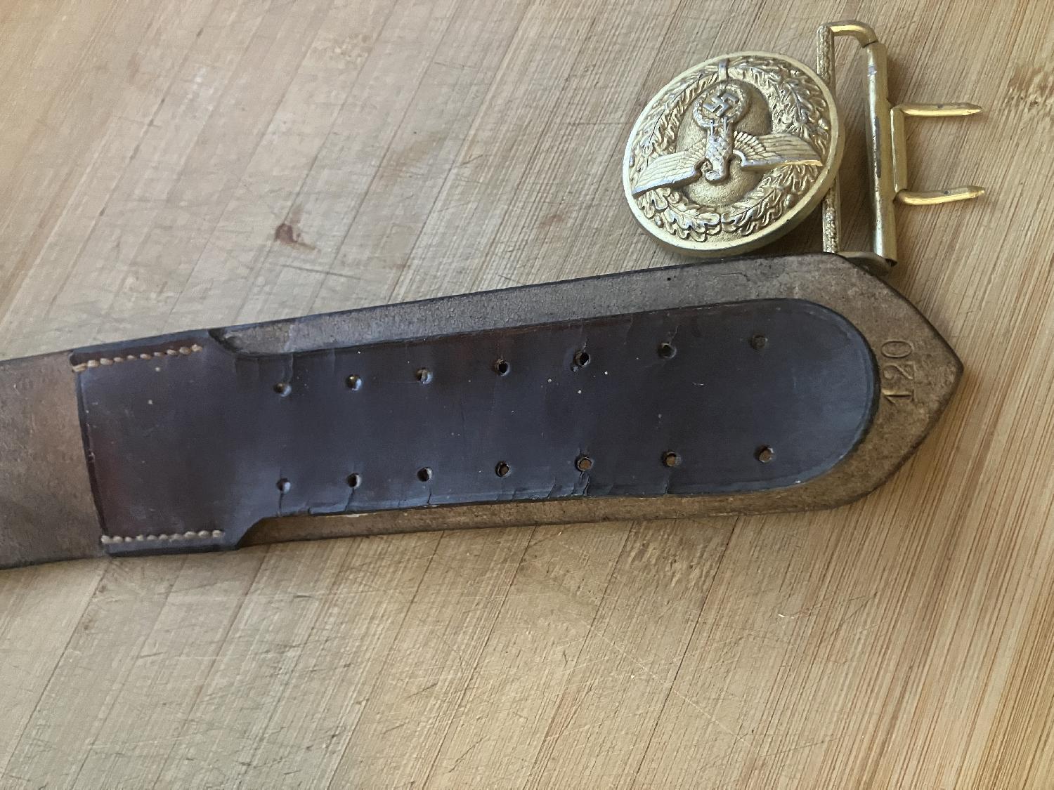 Ceinturon avec même marquage, fabricant, boucle et crochet, cuir un peu dur a graisse avec des craquelures voir photo longueur marqué 120
