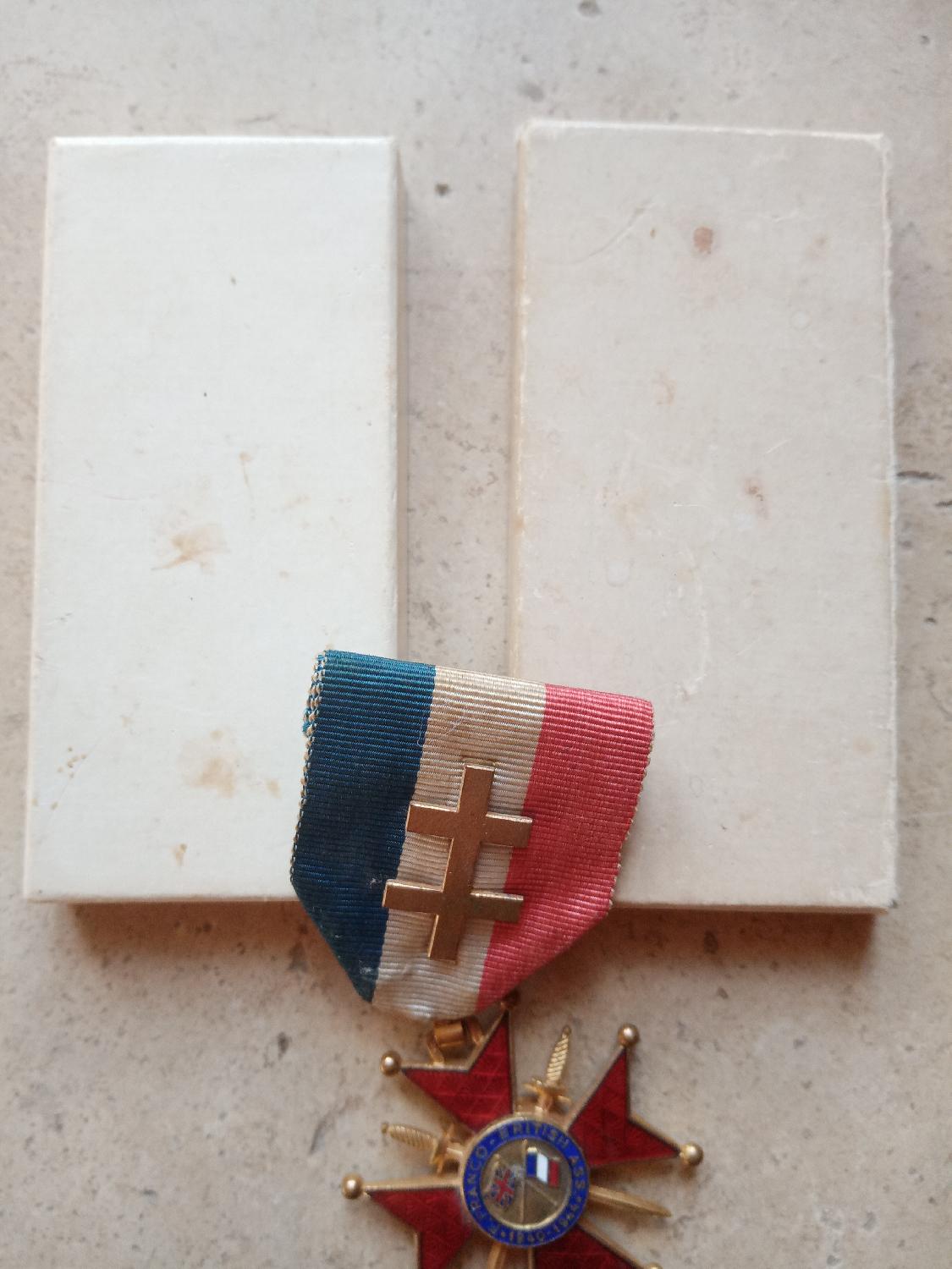 Croix de l'association franco-british 1940 1944 dans sa boîte