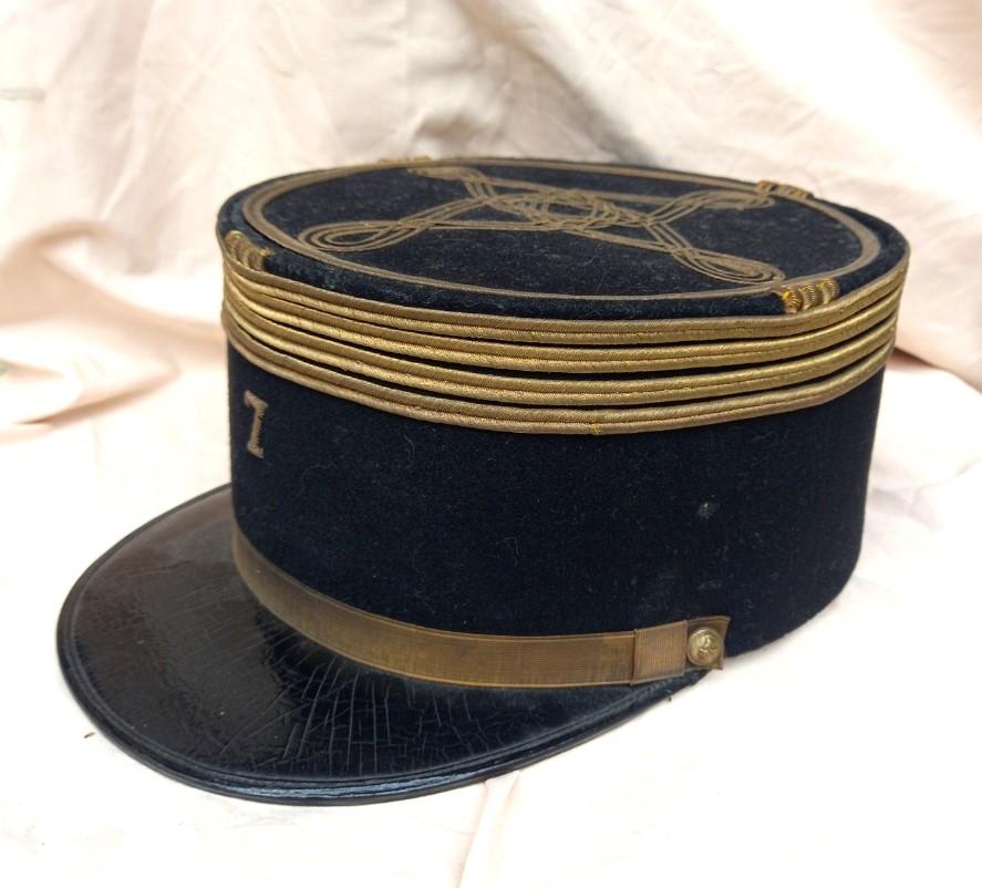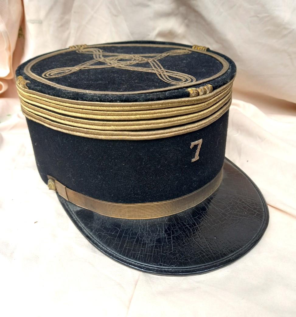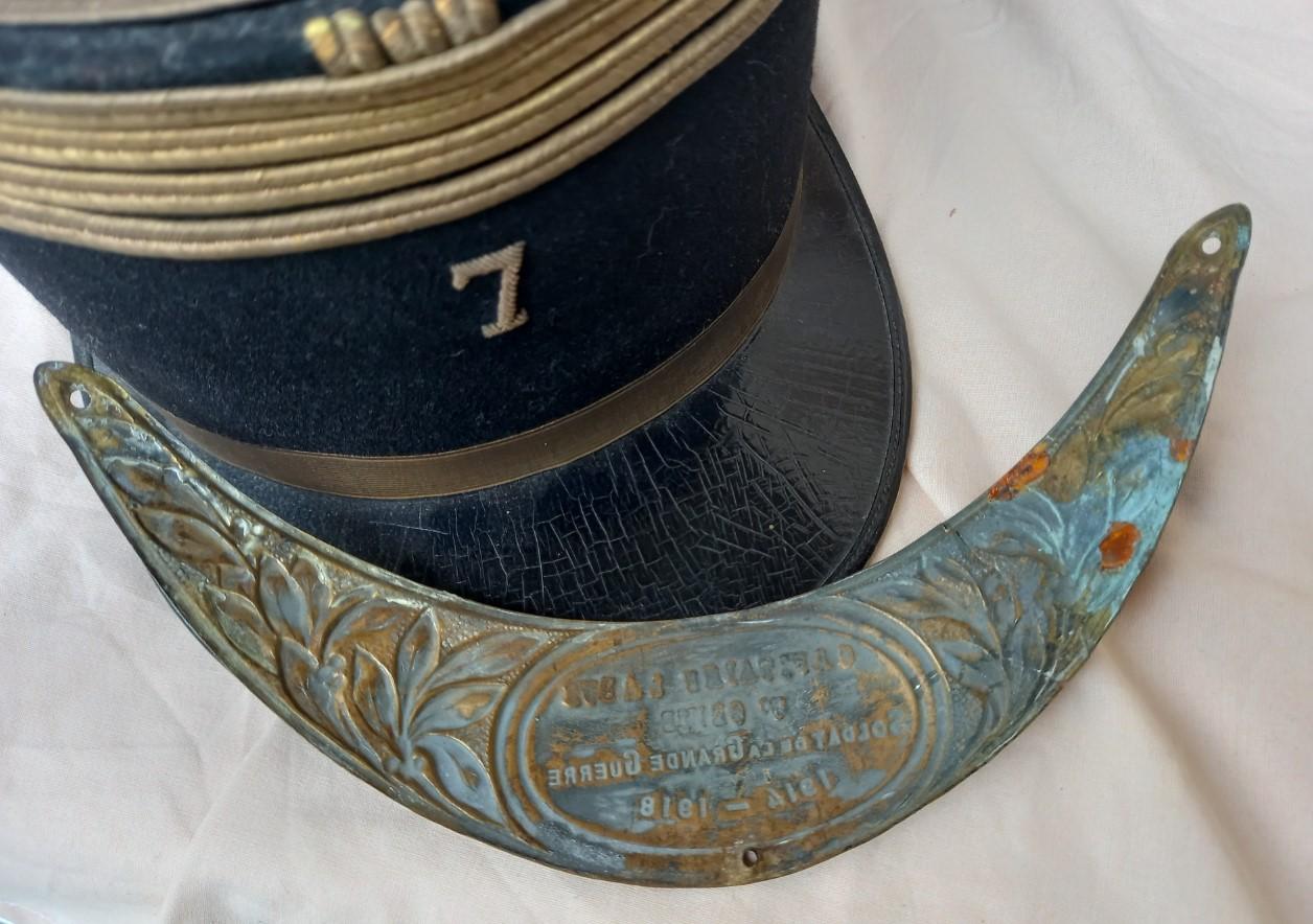 lot sorti de particulier comprenant une képi de capitaine, marqué du 7eme génie à l'interieur ainsi qu'une plaque commémorative nominative, également du 7eme génie.