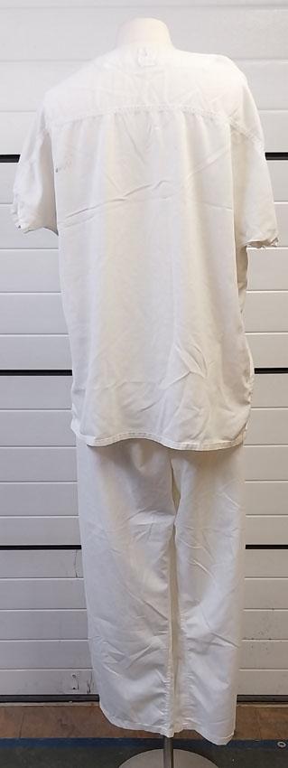 Très rareTenue d'infirmier blanche blouse et pantalon réversible pas de sens il y a le caducé des 2 cotés l'ensemble est datée 1967