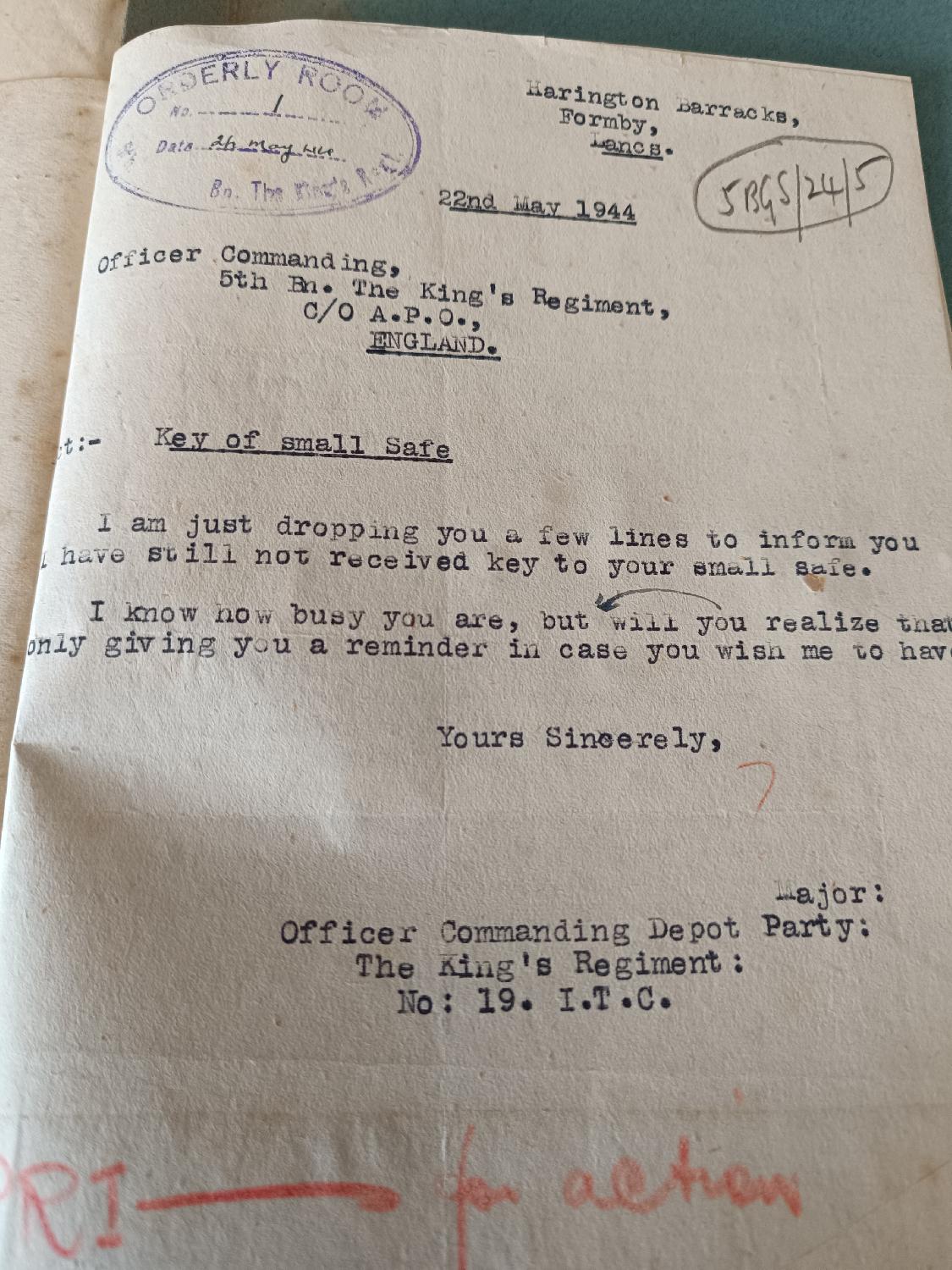 Lot de rare documents administratif du 5Th King Battalion.