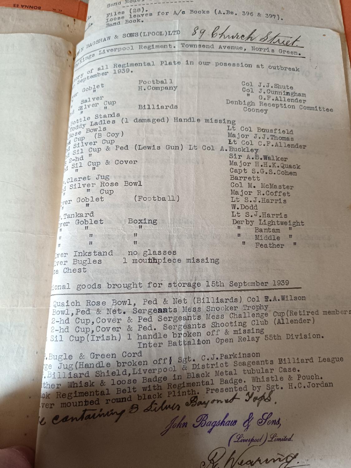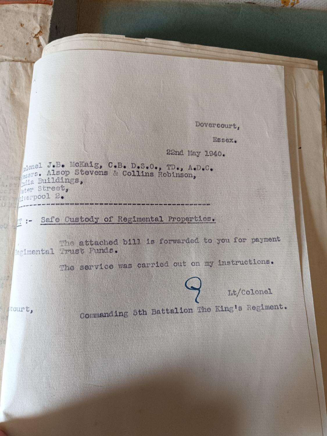 Bonjour à tous, je vous propose ce rare lot de nombreux documents administratif du 5 Th King Battalion comprennant des correspondances entre Officiers, échanges entre Banque et service achat de Matériel...etc .. Dont également des fonds versés par l'Allemagne à l'Angleterre, le tout Allant de 1939 à 1946.