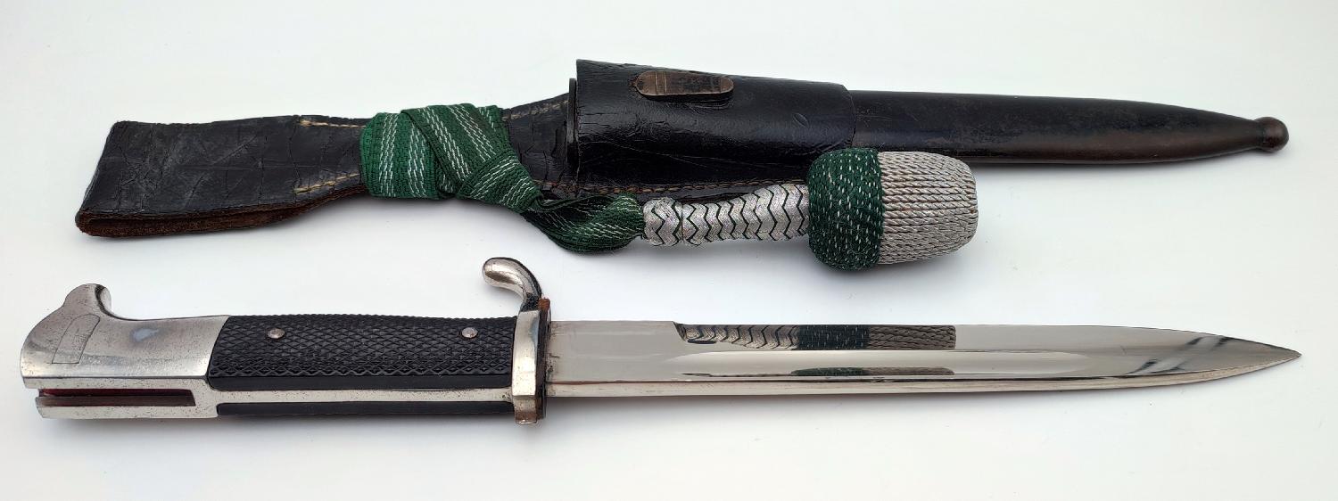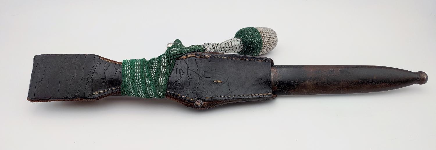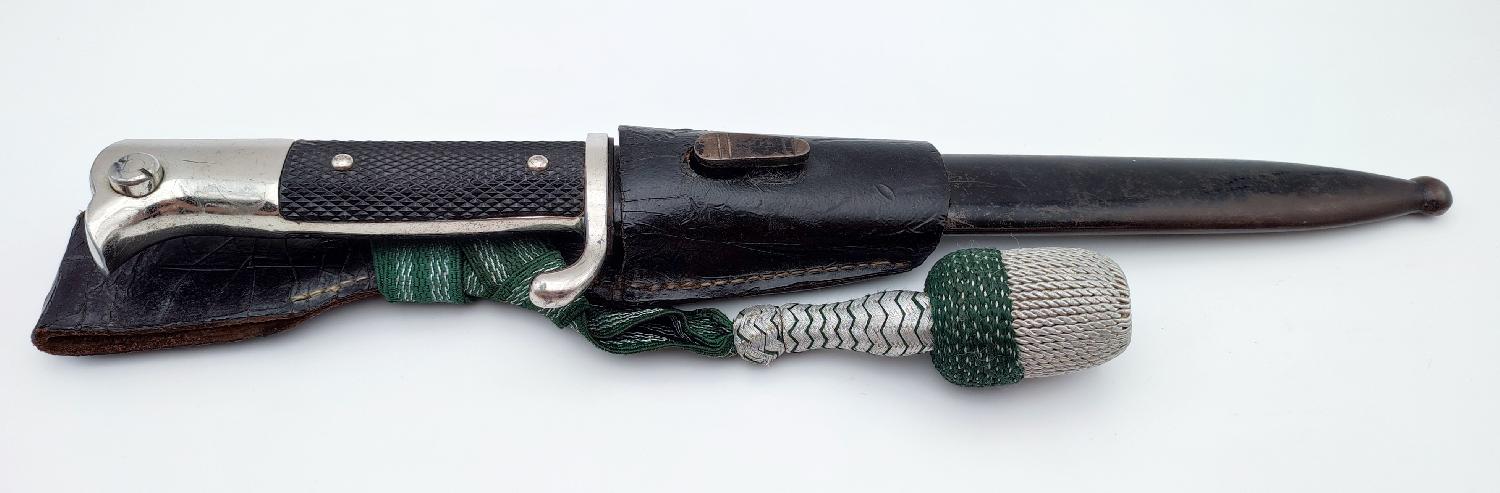 Baïonnette de sortie modèle KS98, règlementaire pour les sous-officiers de la Heer. Cet exemplaire se distingue par la qualité de sa conservation et la présence de ses accessoires d’origine.