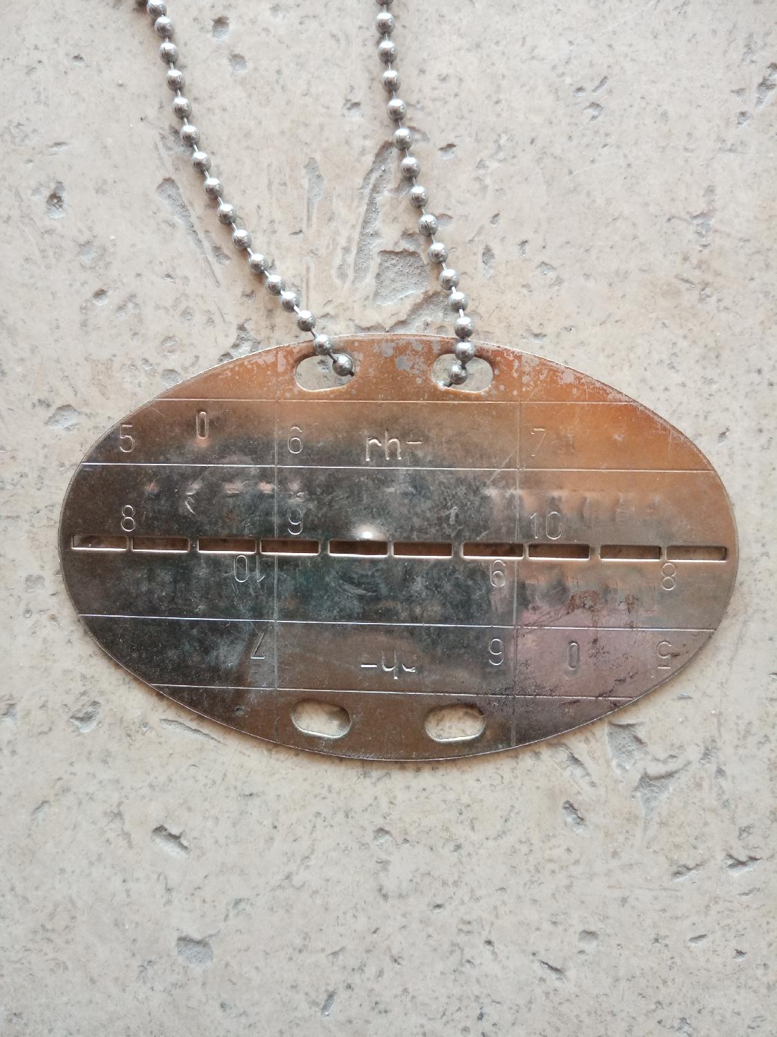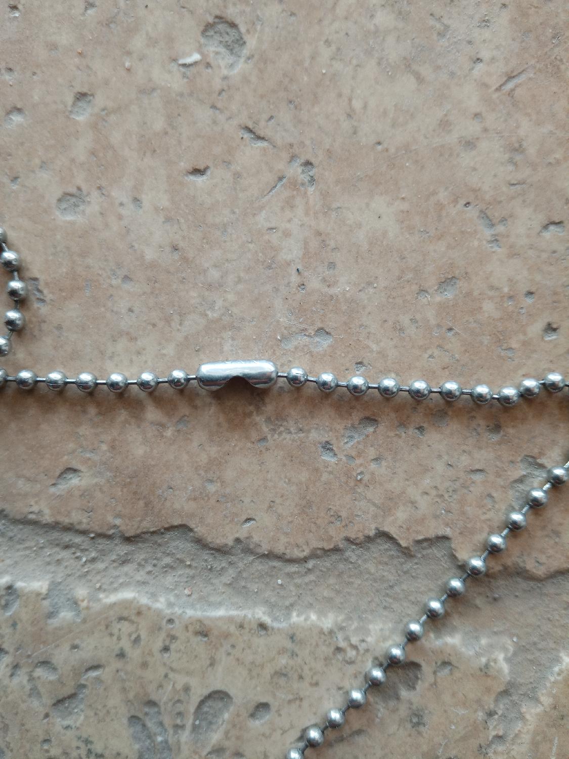 Plaque type allemande, chaînette type US. Prévoir 4 €50 de frais de port en Mondial Relay avec assurance de base de 25 euros. Merci.