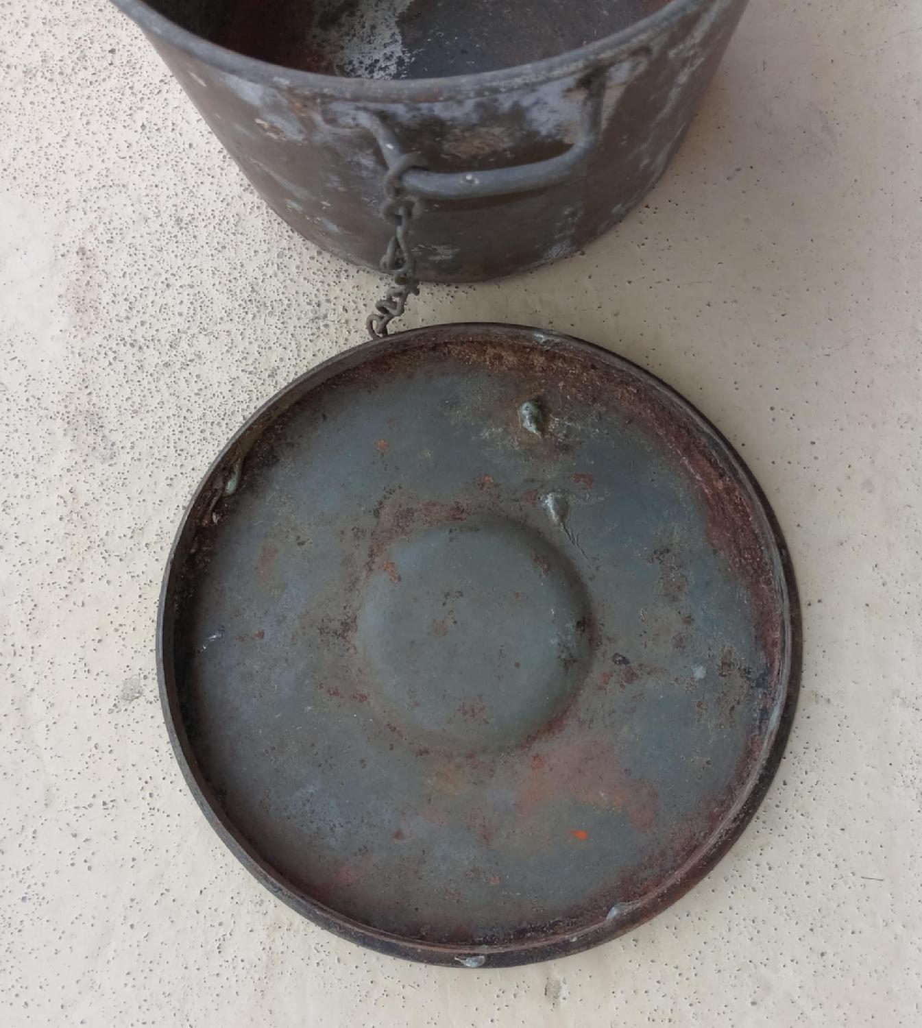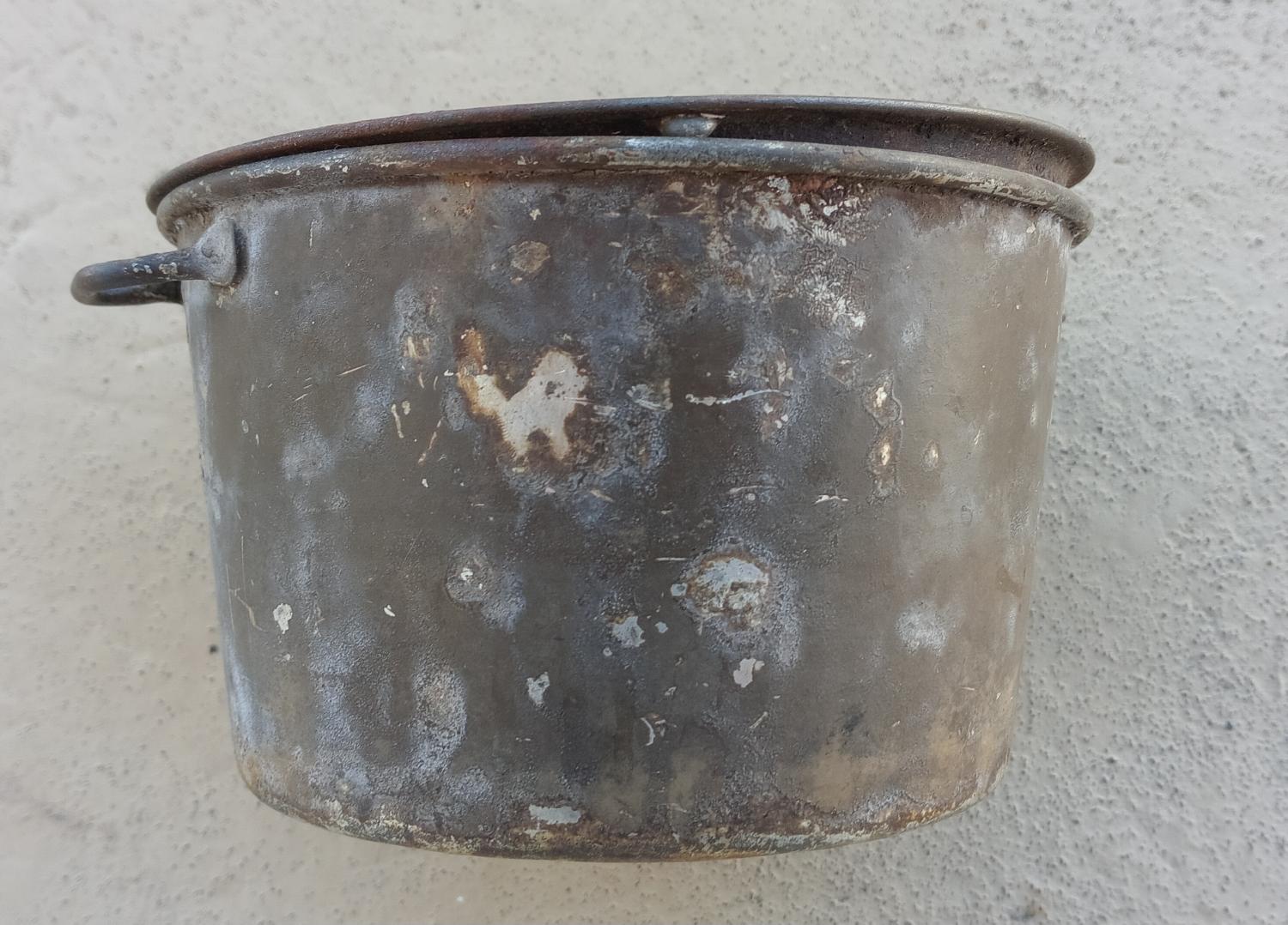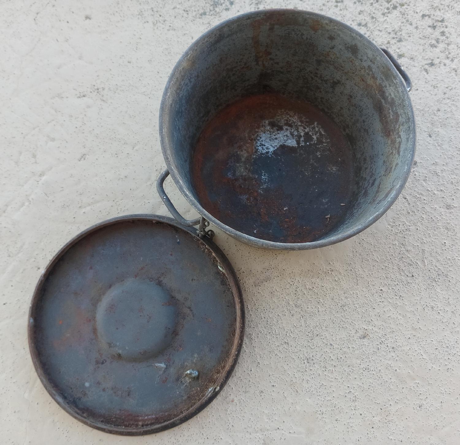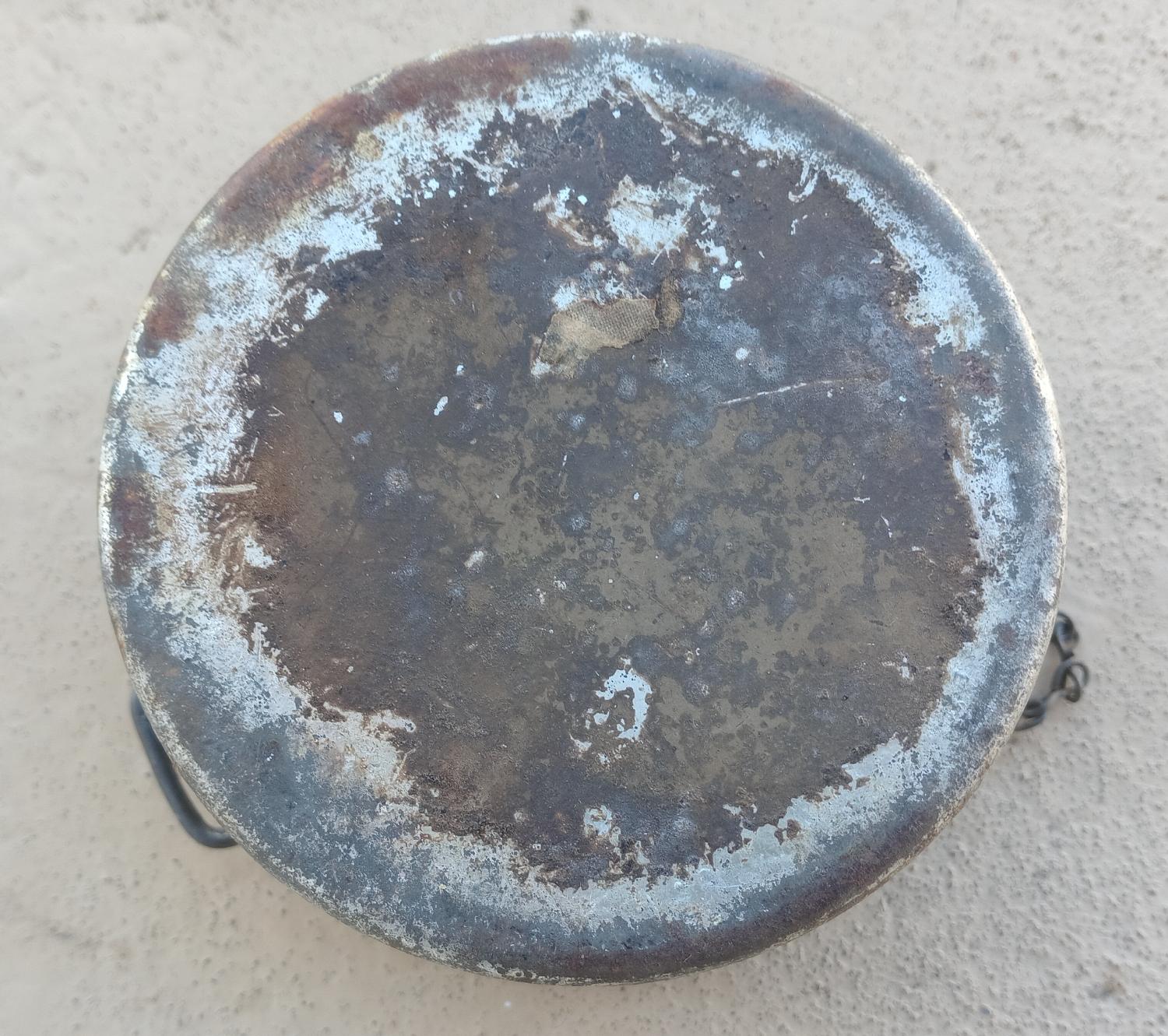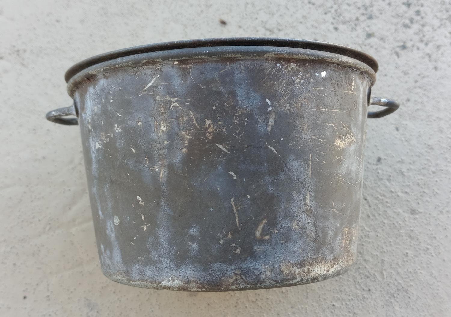 A vendre cette gamelle modèle 1852 repeinte en kaki pour reconditionnement France 40. Trouvée dans le 68.