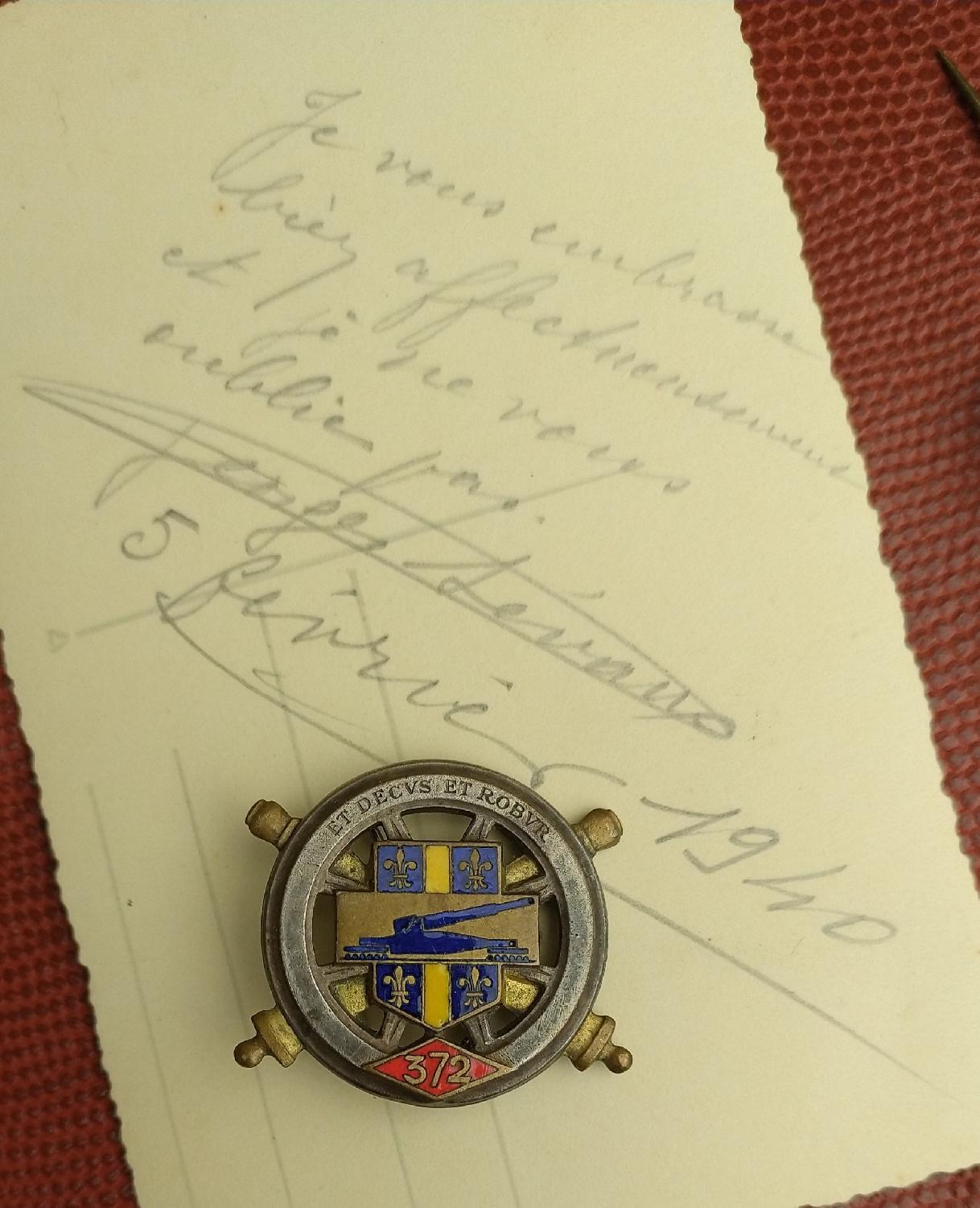 Insigne du 372 éme R.A.L.V.F, formé en 1924, dissous en juillet 40 après la campagne de France (Ligne Maginot).