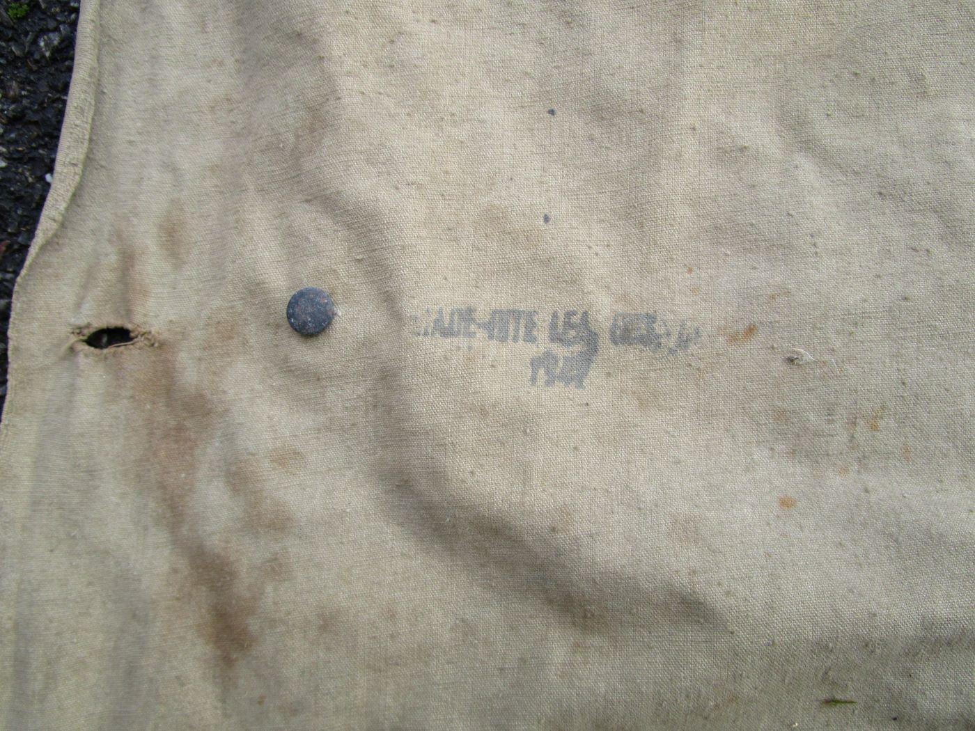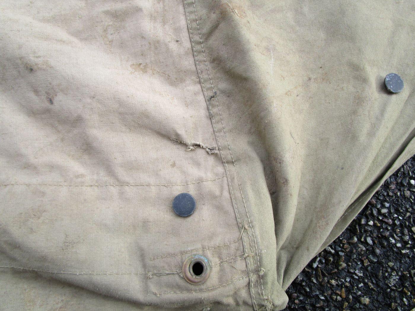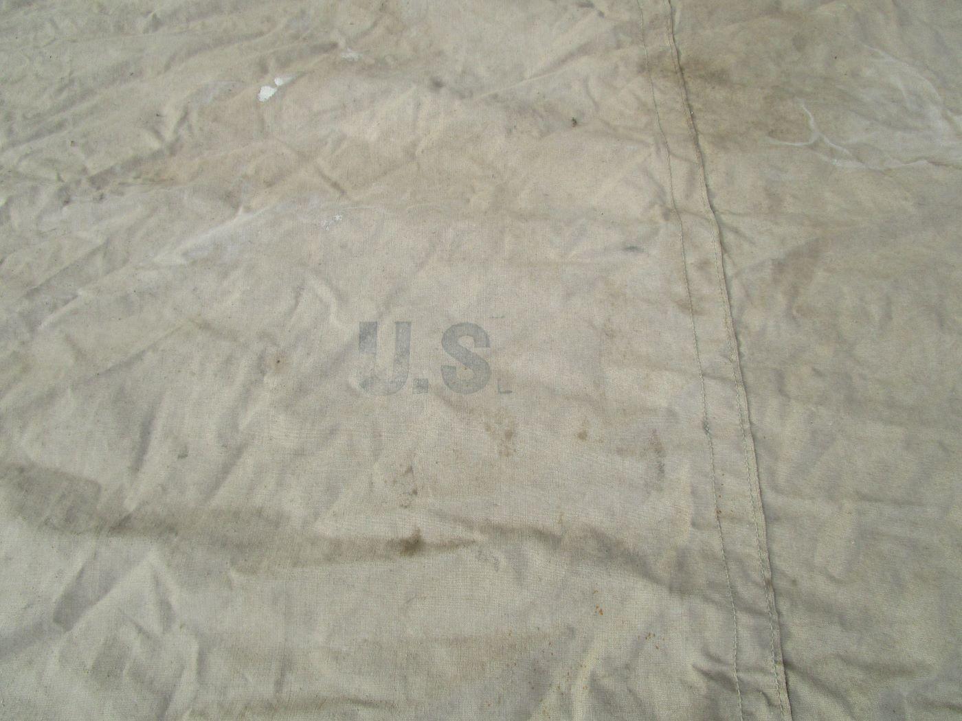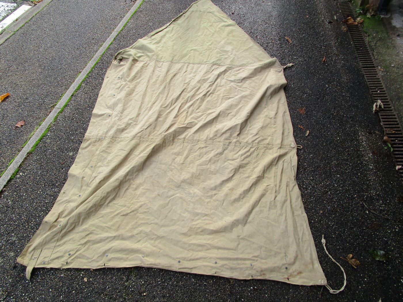 Toile de tente sortie de grenier. Datée 1942, bien marquée US + fabricant et date. Deux petits accrocs (photos sur demande). Tous les boutons sont présents. Prévoir 17.40 euros en colissimo ou 8 euros par mondial relay.