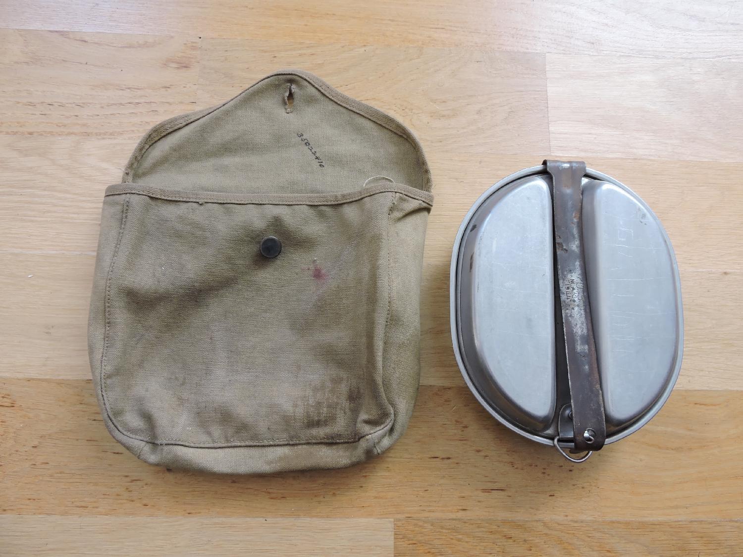 Pochette à gamelle M-28 avec matricule + gamelle datée 1944.