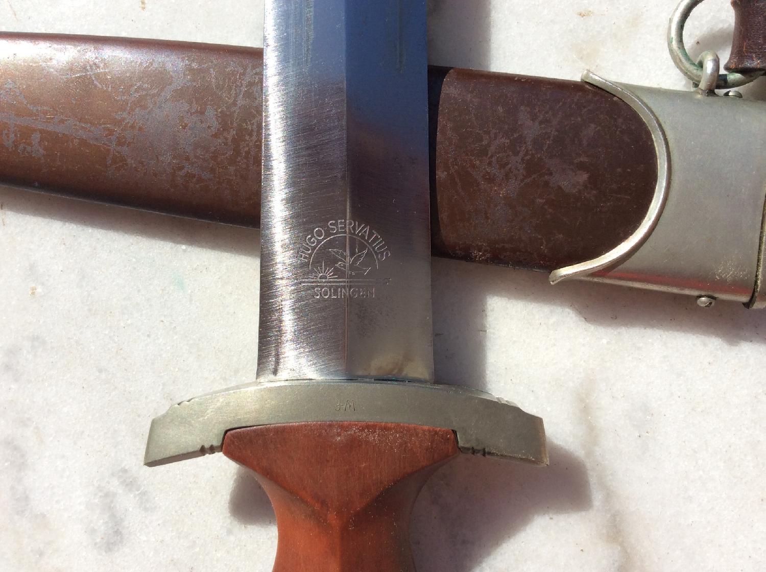 Je vends cette dague du très rare fabricant HUGO SERVATIUS, elle et superbe jamais démontée et garantie d’origine, son cuir est monté lui aussi d’origine dessus.