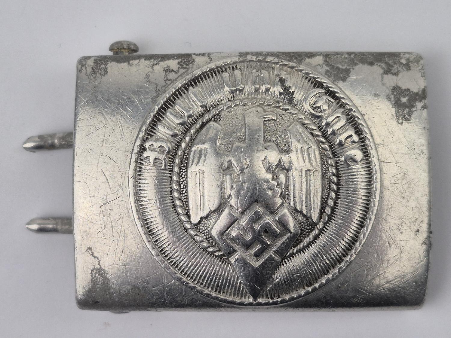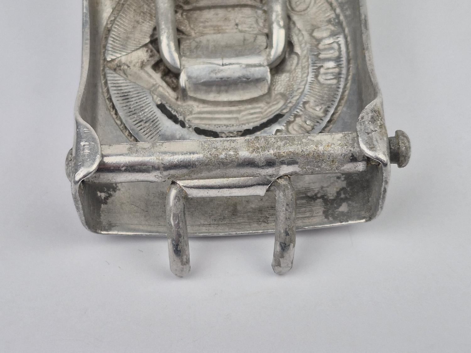 Boucle de ceinturon de la Hitlerjugend modèle de fabrication en aluminium avec son rare pontet central ,marquage RZM M 4 / 39 pour la firme Assmann