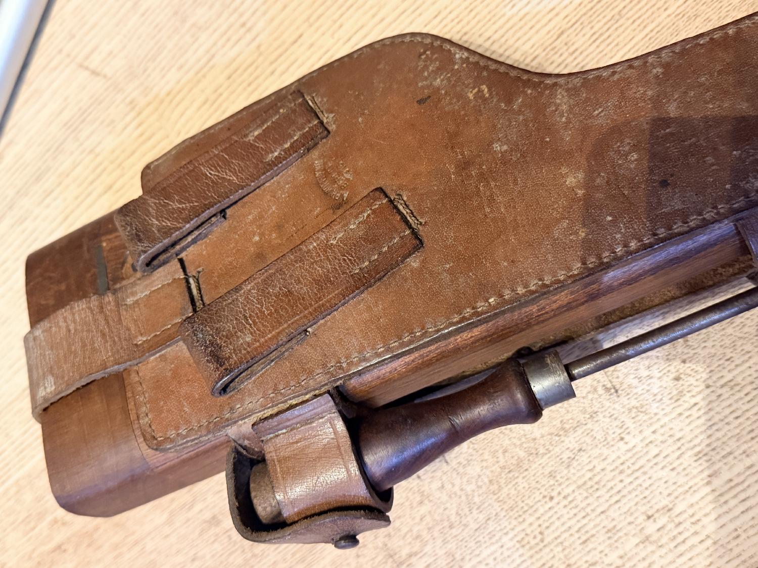 Holster original Berlin 1916 pour Mauser C96 et sa baguette de nettoyage + crosse étui reproduction.
