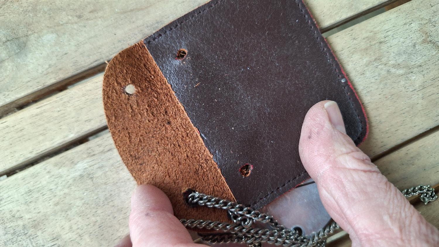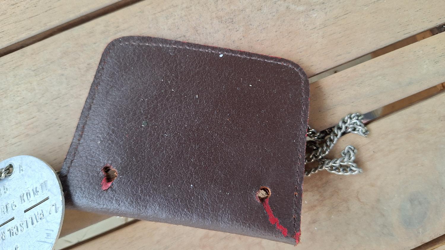 Avec chaînette et son porte plaque en cuir
